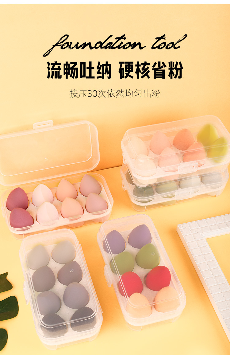 Conjunto de huevos de maquillaje transfronterizo super suave sin polvo de cosméticos almohadilla de aire polvo de doble uso esponja desechable