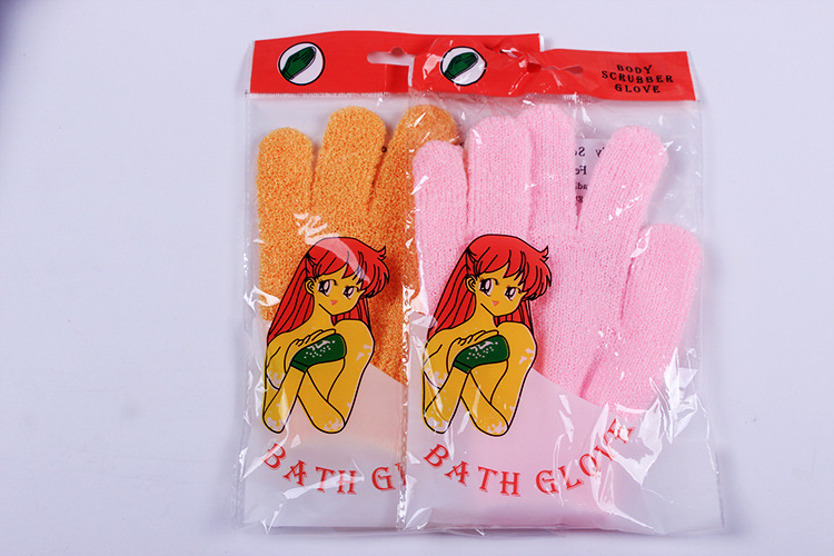 Guantes de baño coreanos de cinco dedos creativos guantes de exfoliación de nylon de doble cara espalda de frotar artefactos mágicos etiquetado transfronterizo
