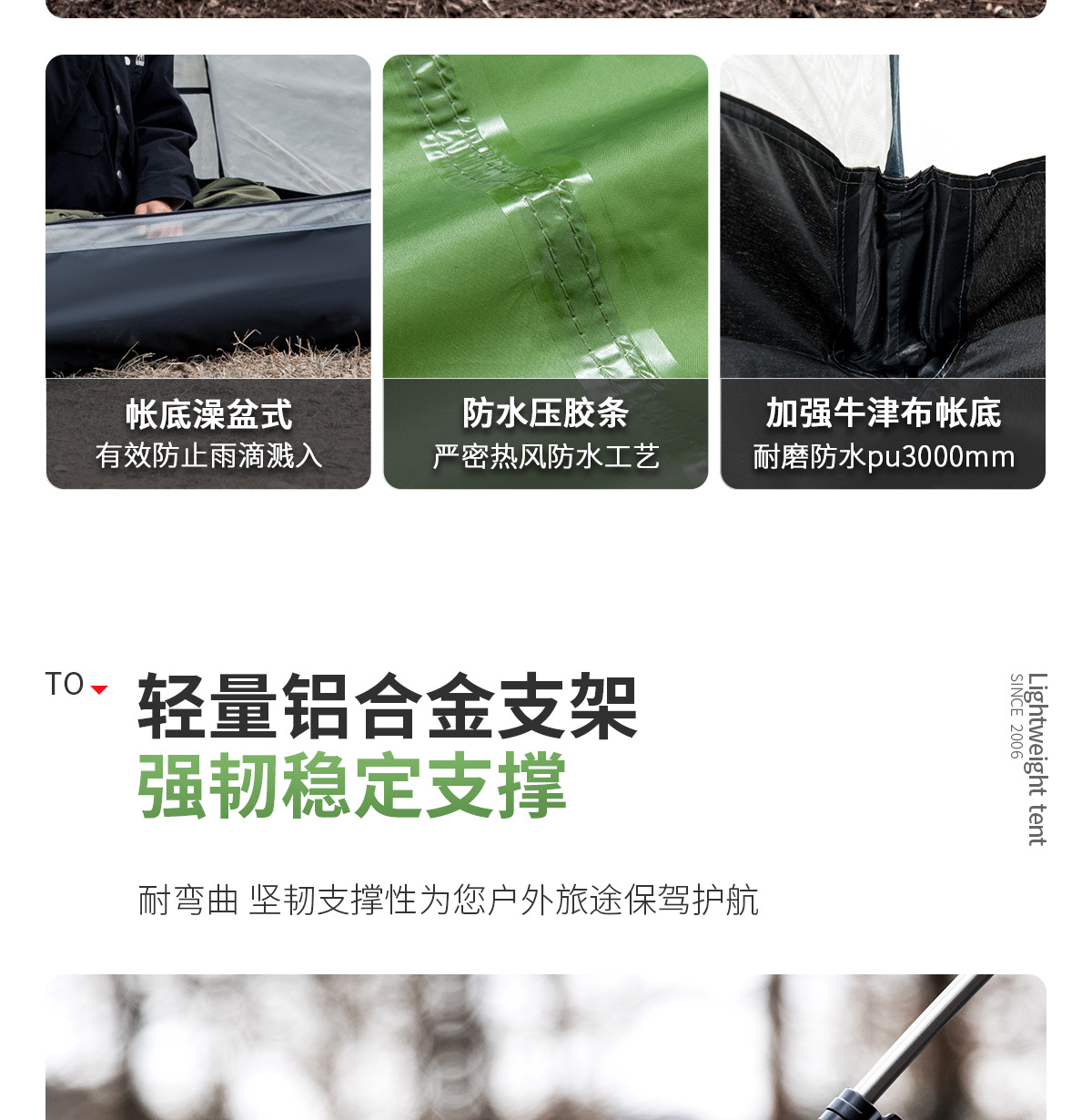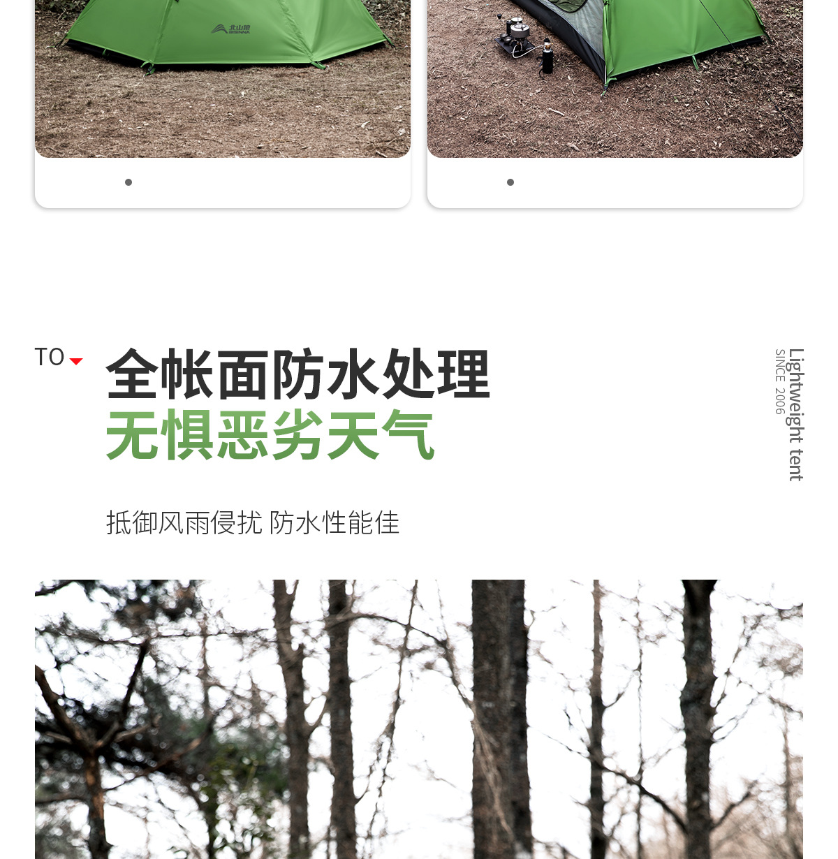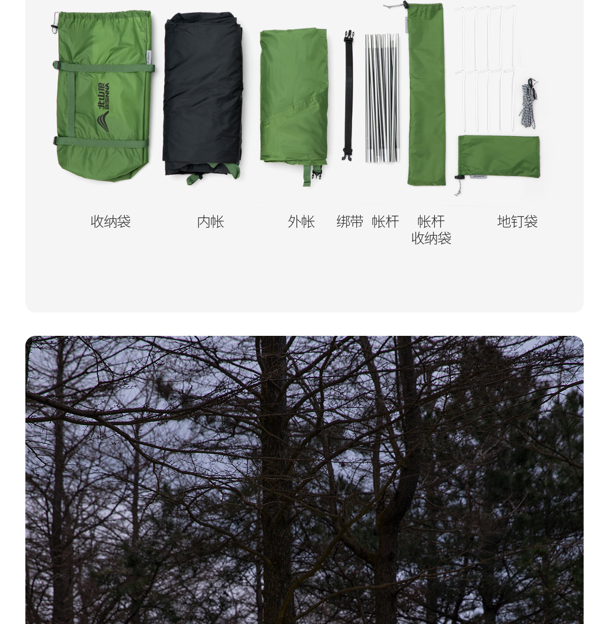 Tienda al aire libre Beishan Wolf Caminata portátil y liviano Camping al aire libre durante la noche Tienda de poste de aluminio doble a prueba de tormentas
