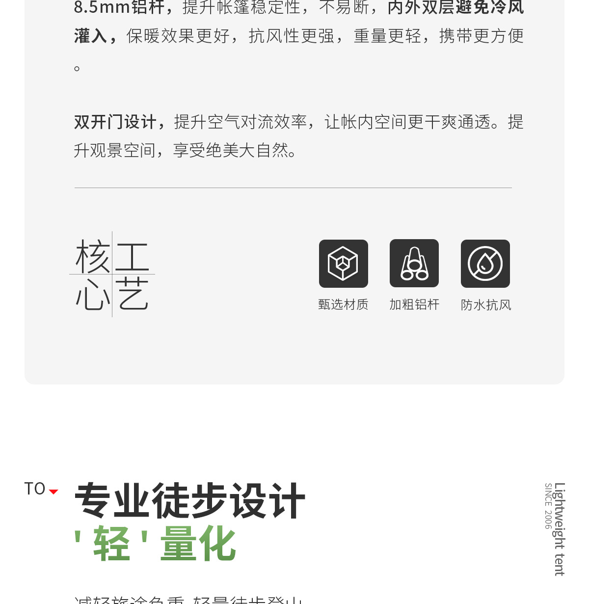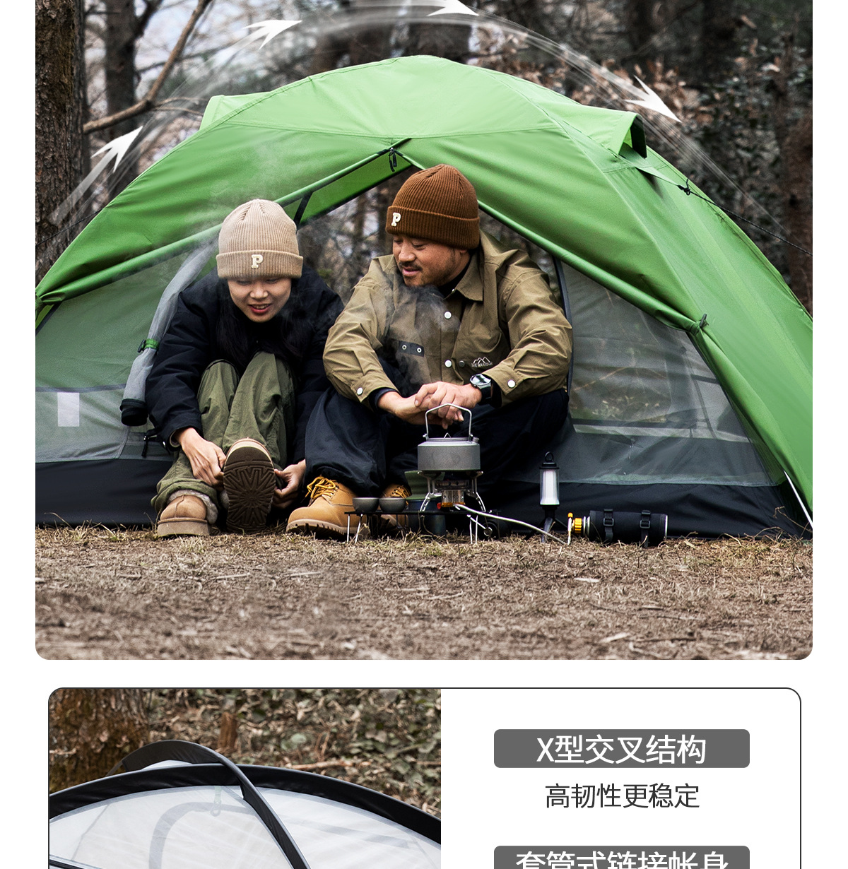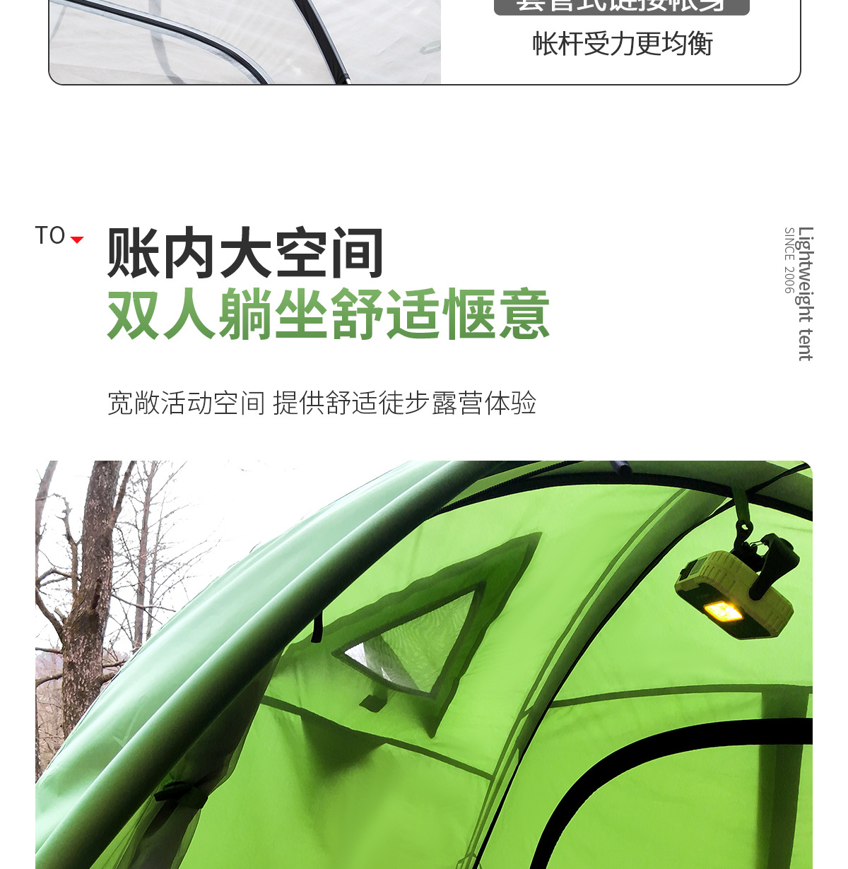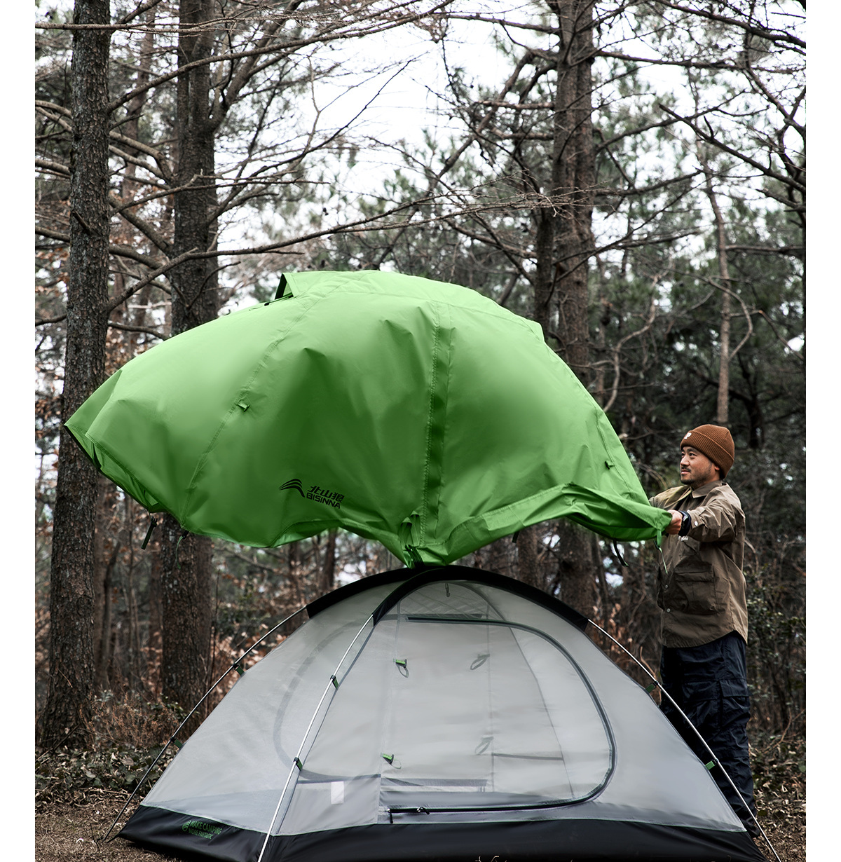 Tienda al aire libre Beishan Wolf Caminata portátil y liviano Camping al aire libre durante la noche Tienda de poste de aluminio doble a prueba de tormentas