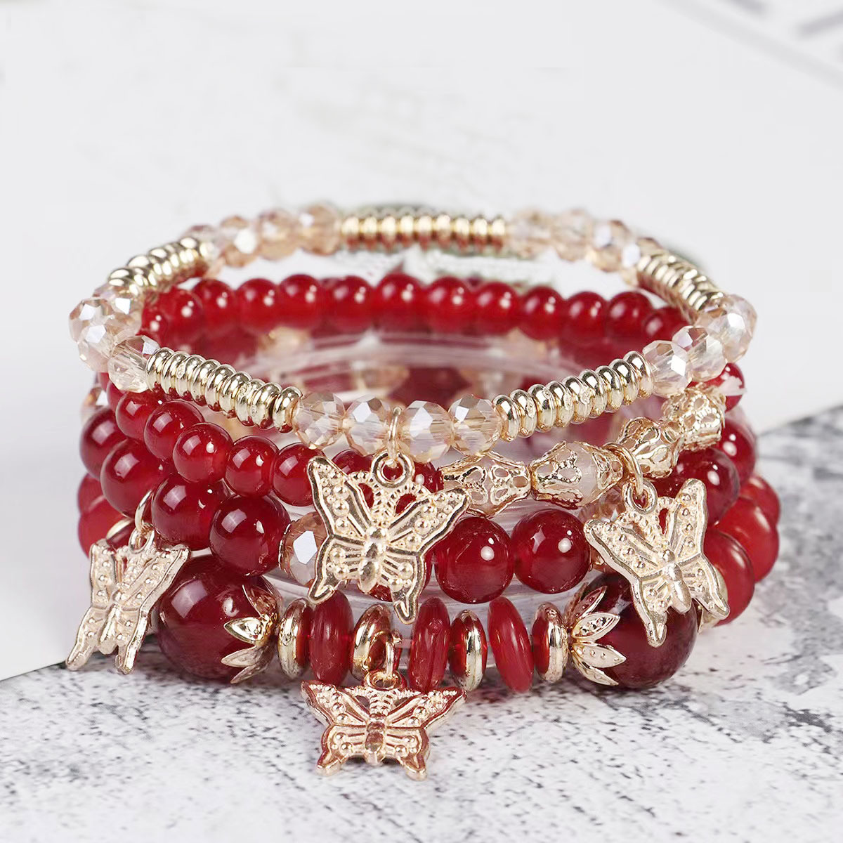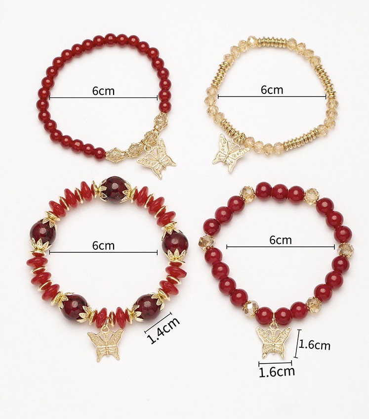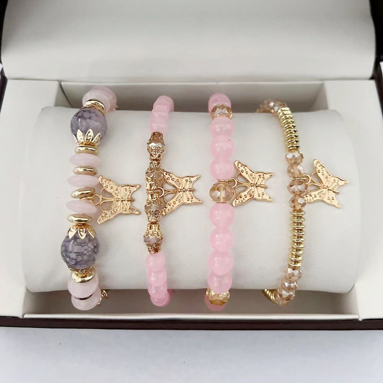 Bohemia pulsera al por mayor precio bajo cadena de ágata flange de vidrio de colores pulsera de mariposa de galvón eléctrica cuatro paquetes
