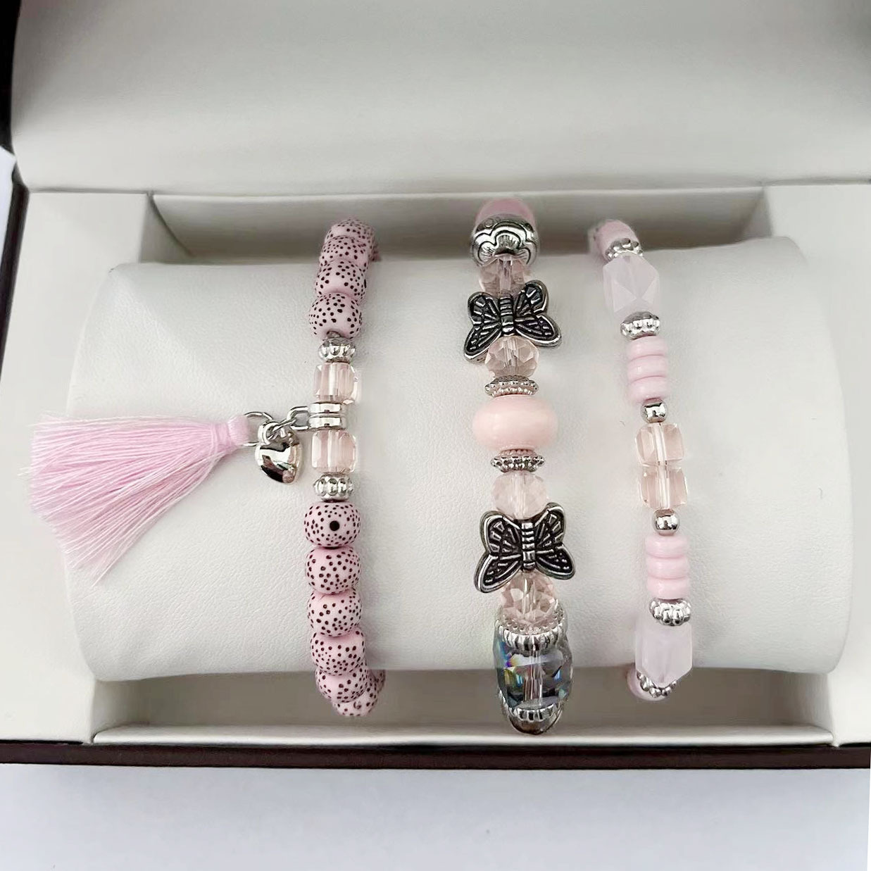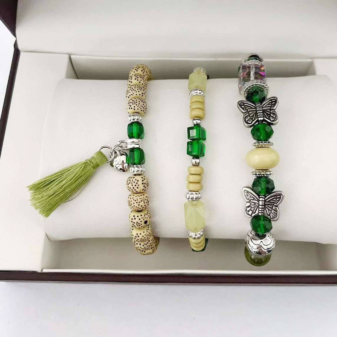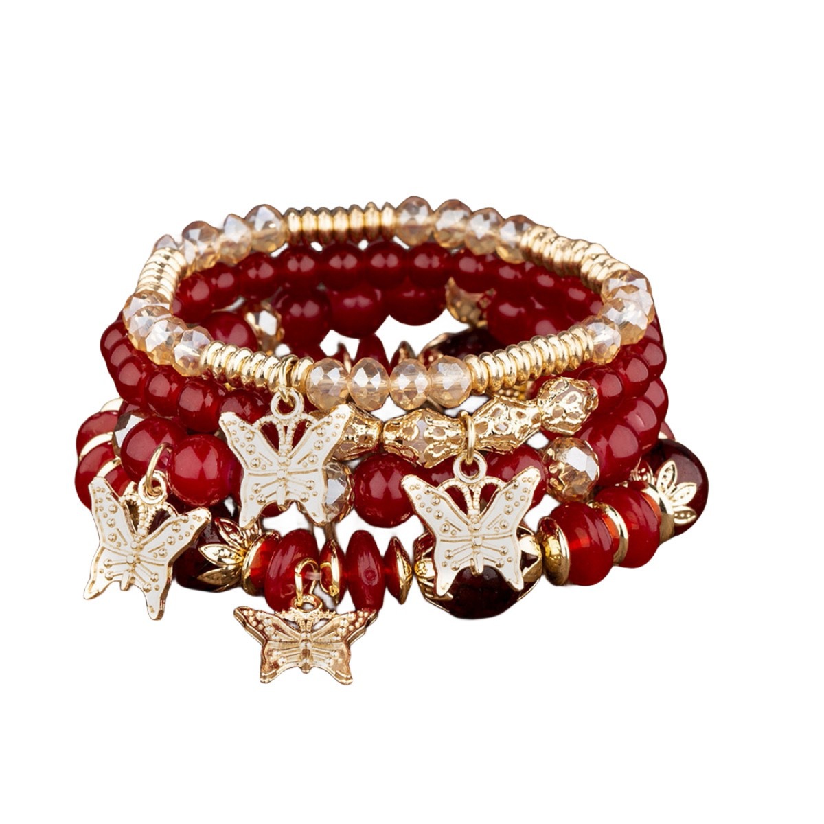 Bohemia pulsera al por mayor precio bajo cadena de ágata flange de vidrio de colores pulsera de mariposa de galvón eléctrica cuatro paquetes