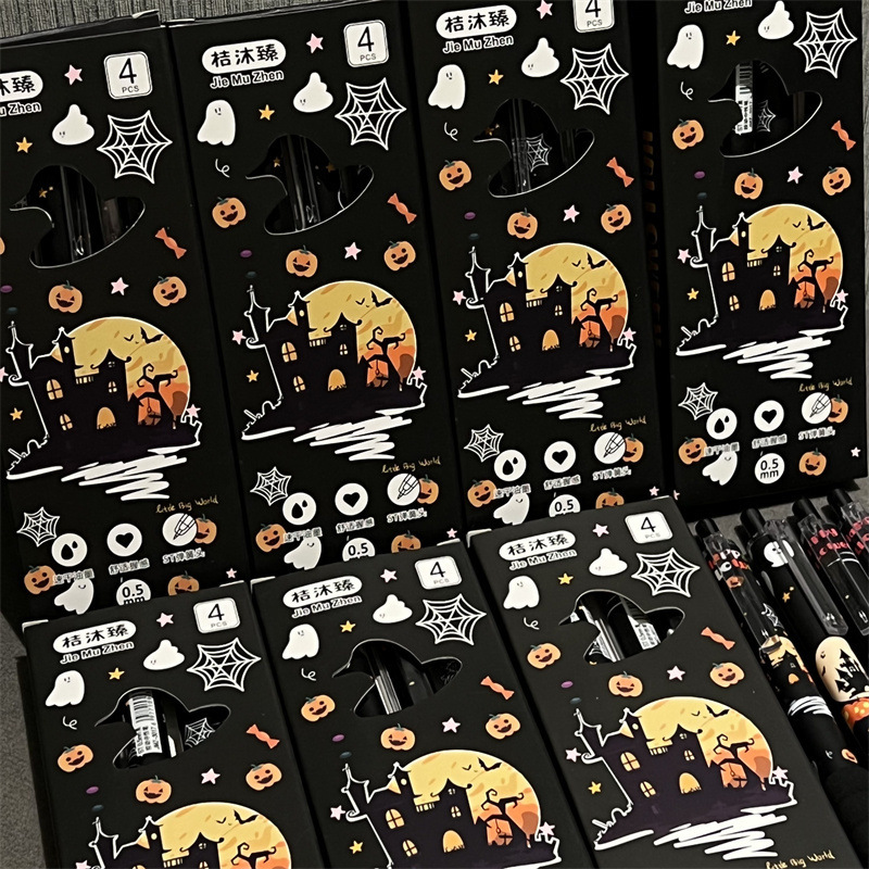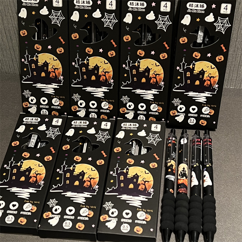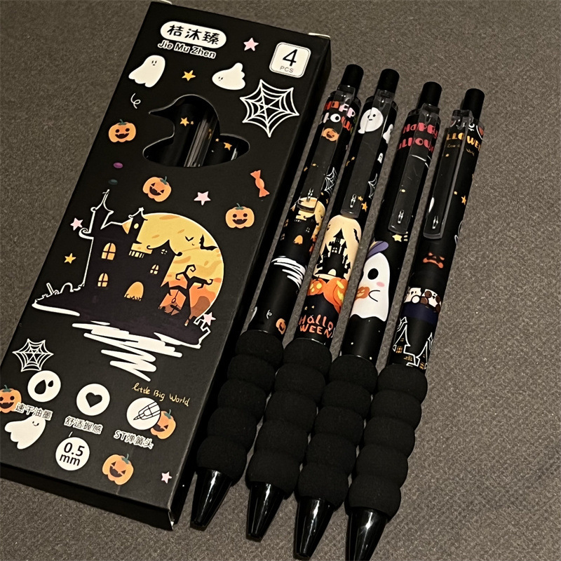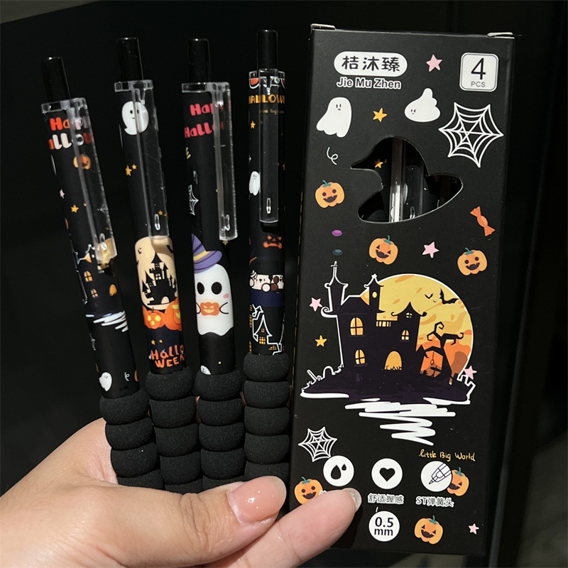Halloween esponjoso bolígrafo neutro alto valor facial ins viento encantador estilo de estudiante bolígrafo neutro negro cabeza