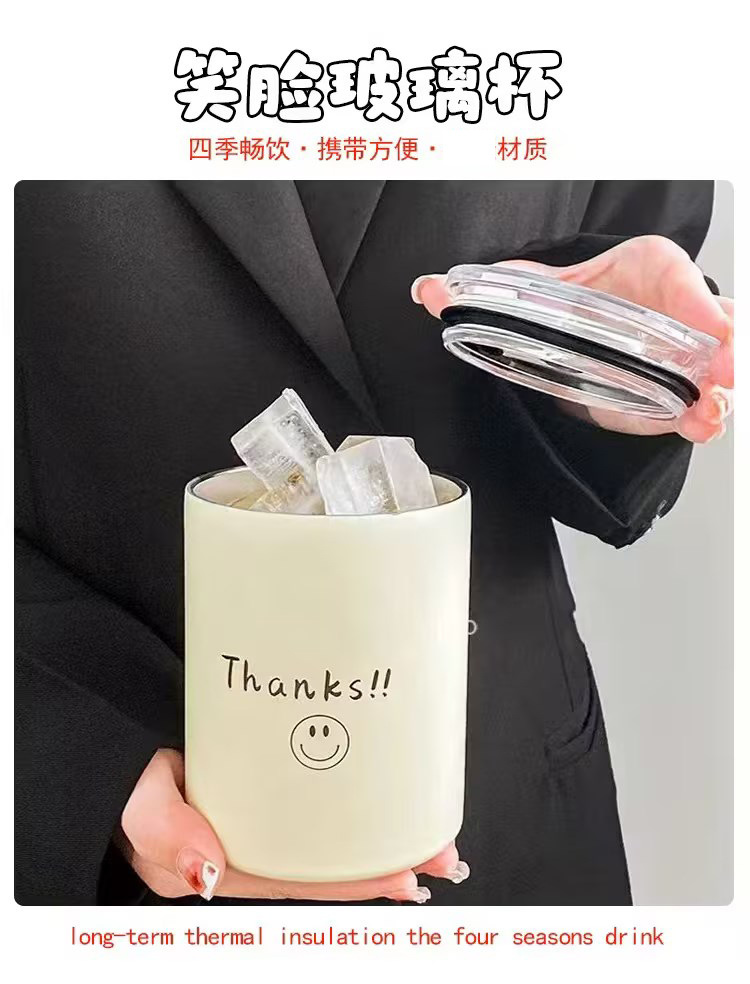 Taza pequeña al por mayor Taza de agua para parejas de nicho Taza de café de oficina Taza de vidrio exquisita Taza de paja portátil