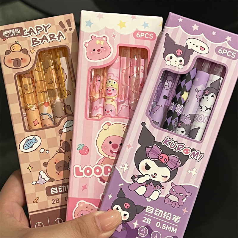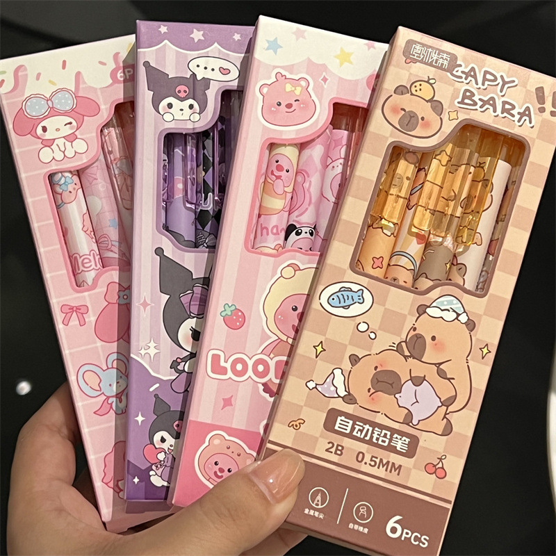 Lápices automáticos lindos Capibara Kulomi Melaty de alto valor para estudiantes Lápices Lubi 0.5 caja