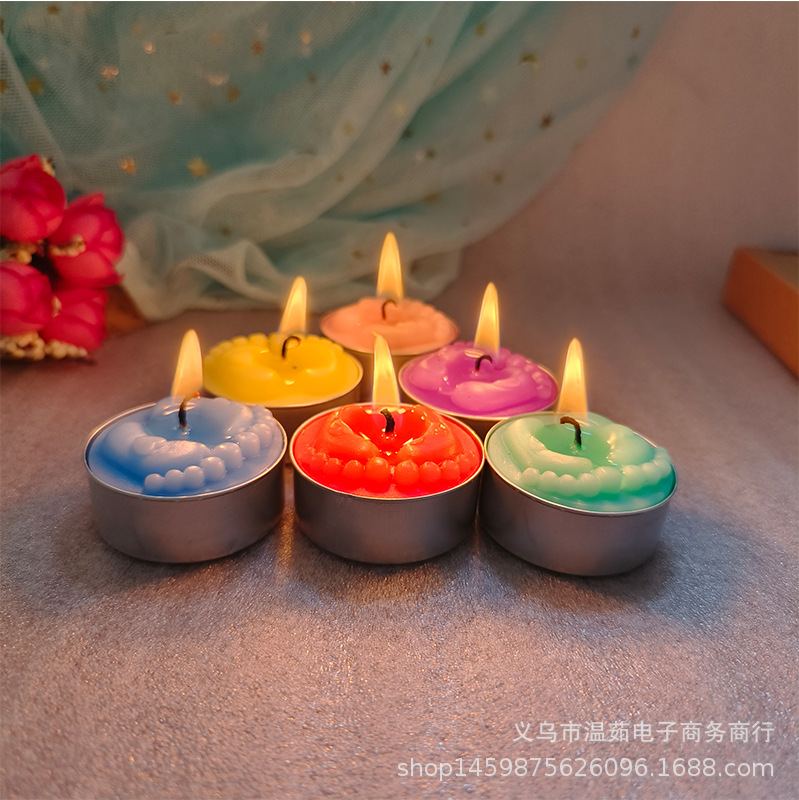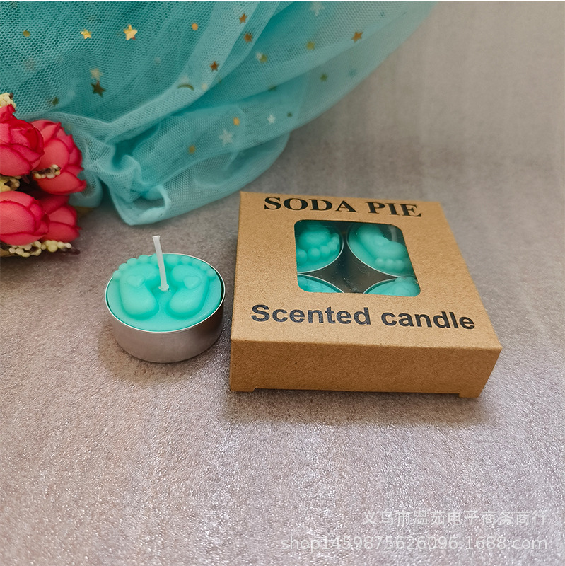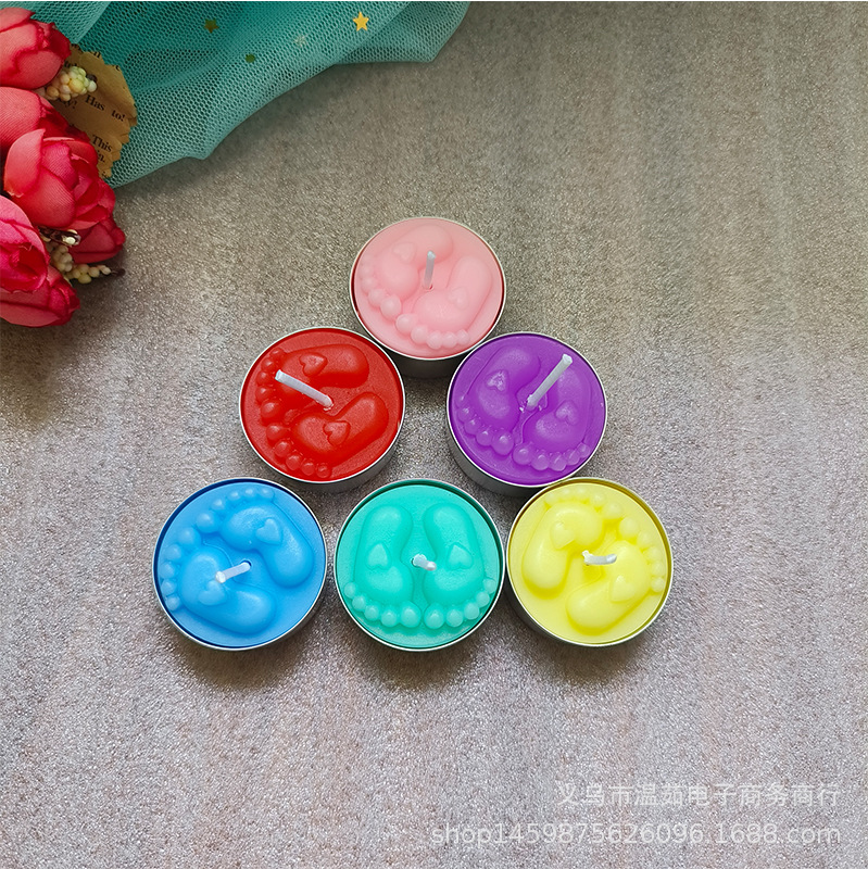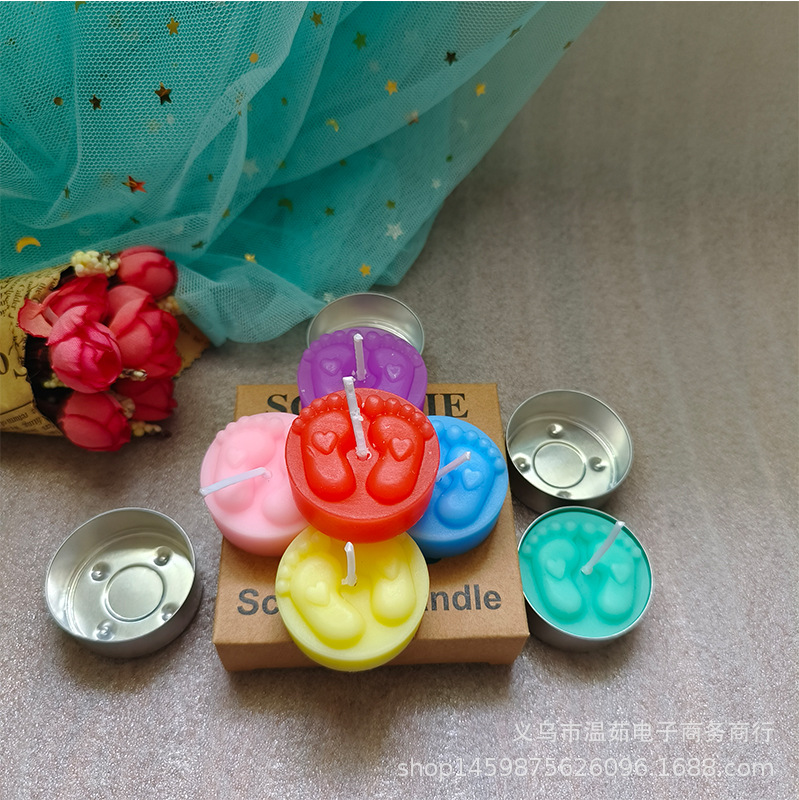 Fábrica en stock suministro redondo pequeña vela color aromaterapia pequeños pies vela atmósfera cumpleaños que deseen vela