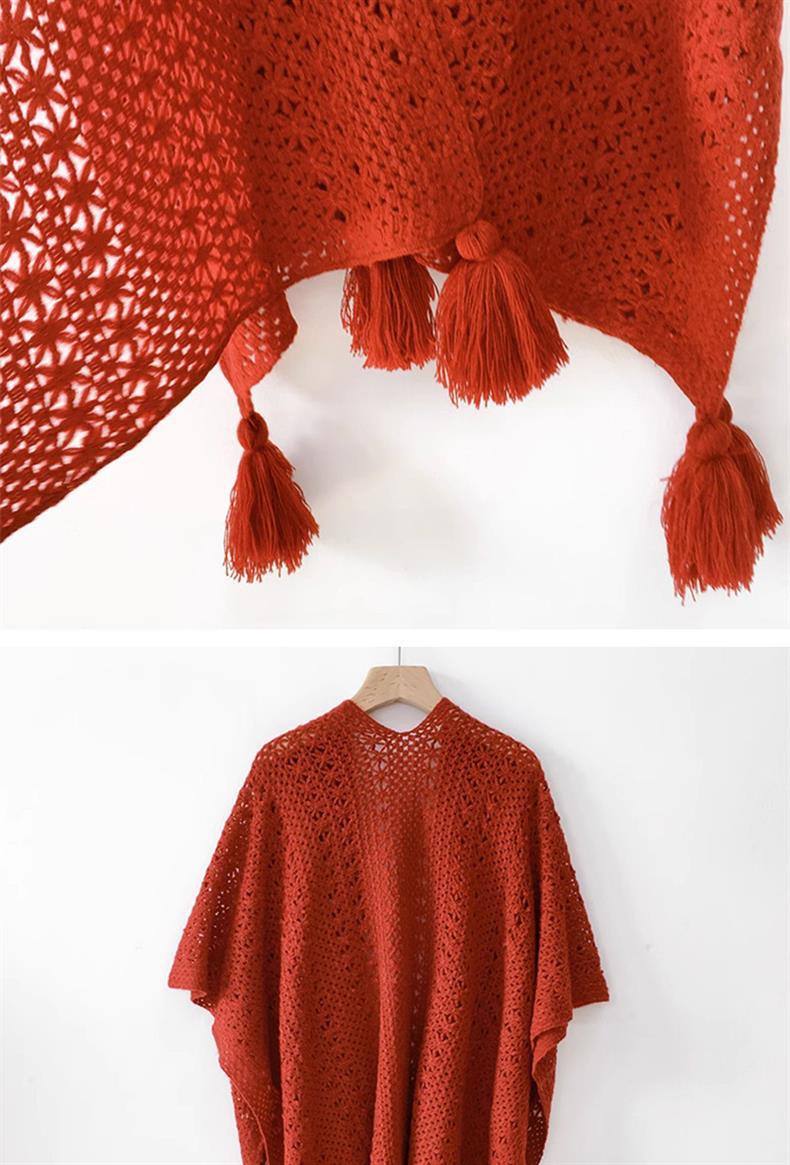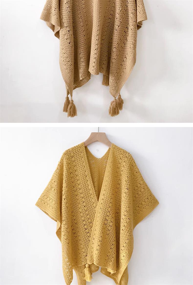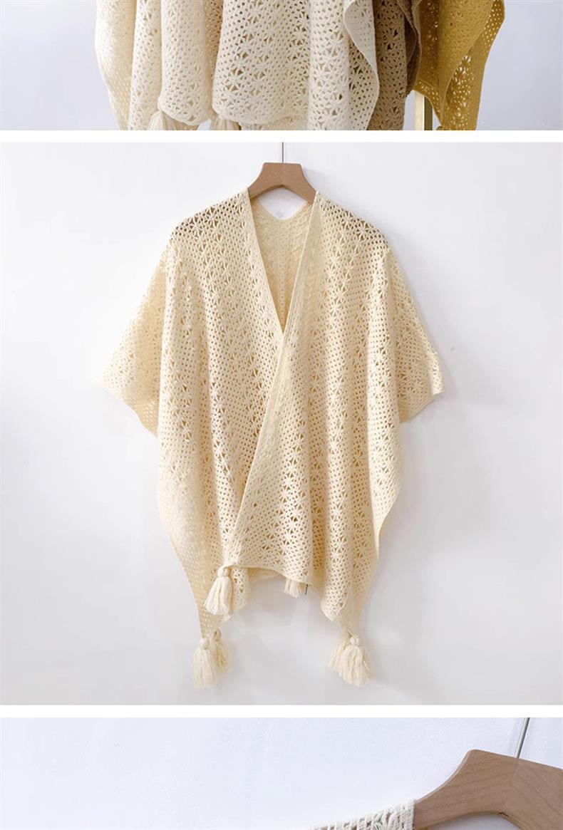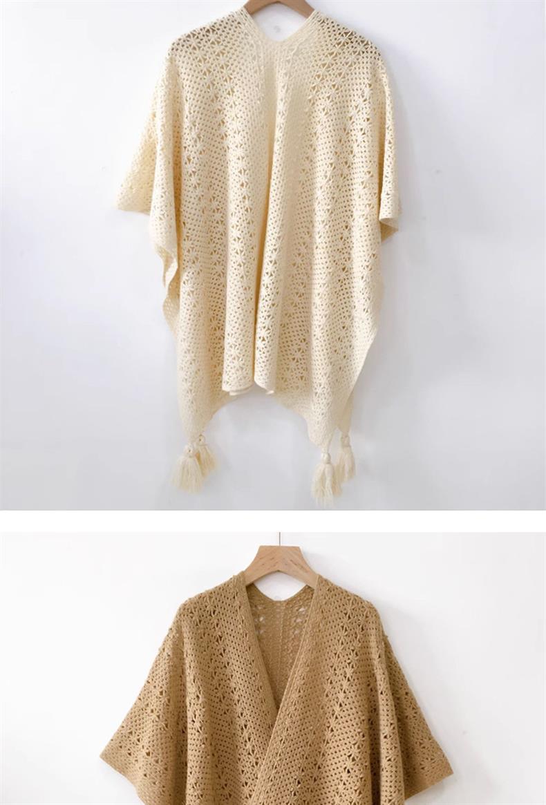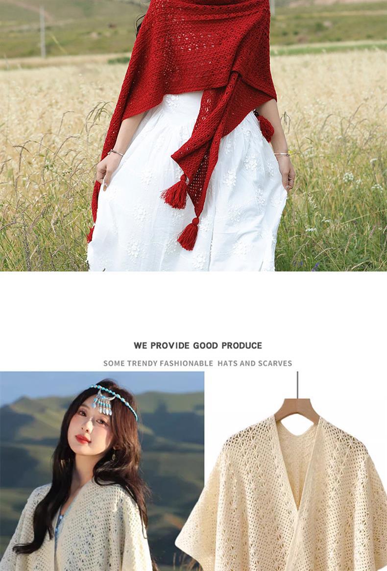 Estilo nacional de color sólido agujero de tejido chal exterior con decoración de viaje de mujeres Xinjiang con una capa de capa de capa universal