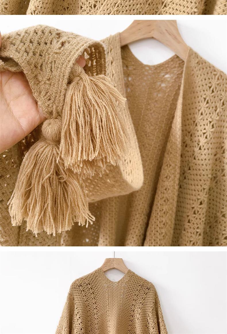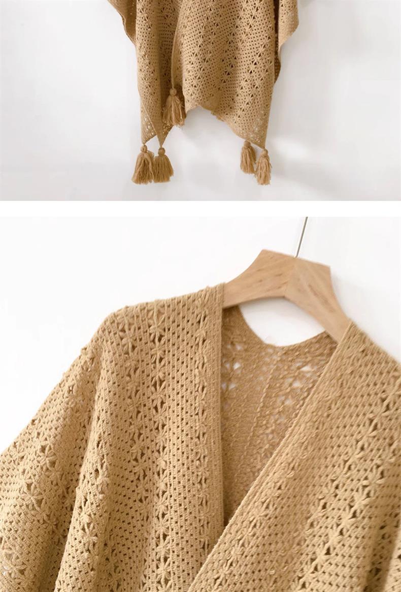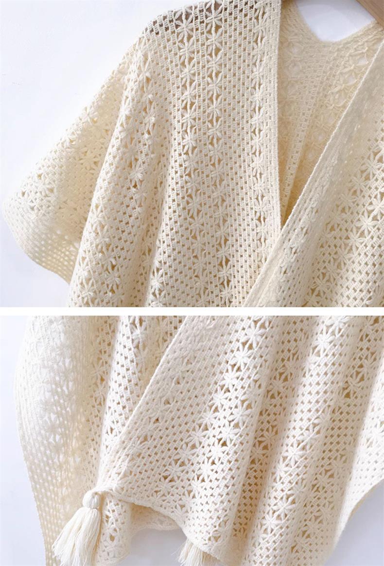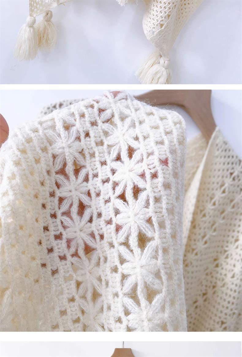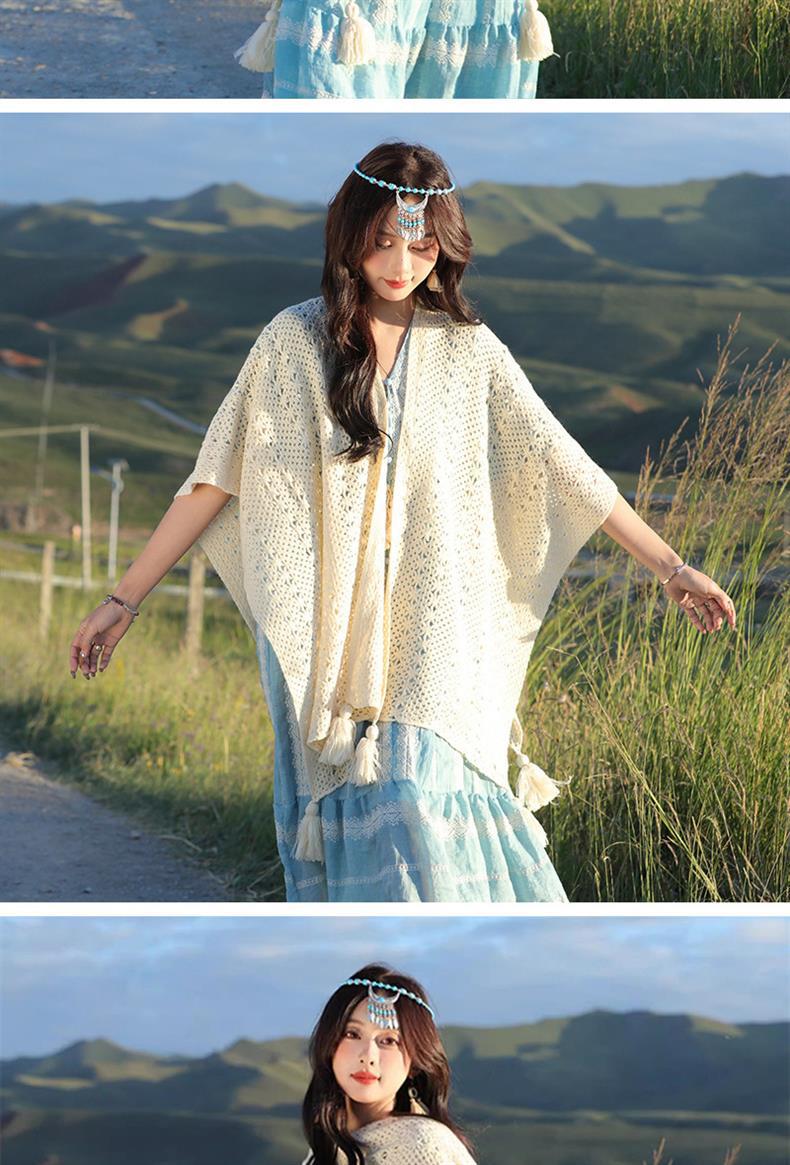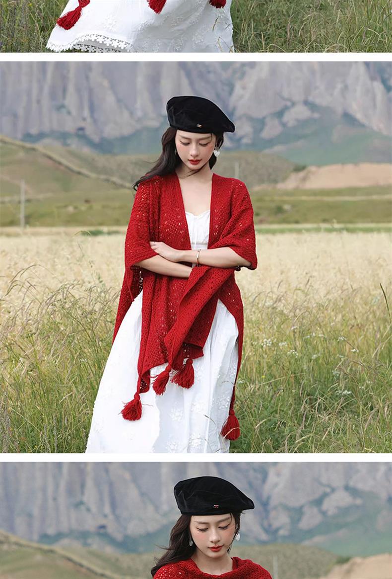 Estilo nacional de color sólido agujero de tejido chal exterior con decoración de viaje de mujeres Xinjiang con una capa de capa de capa universal