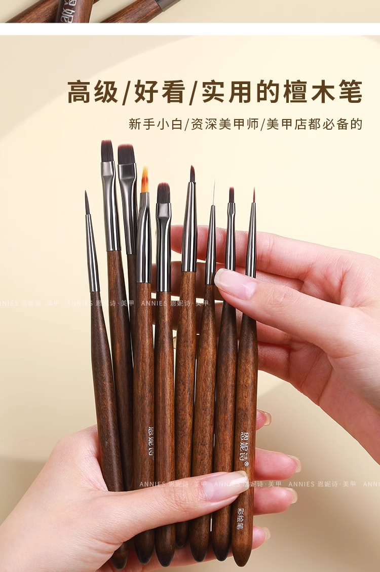 Unidad de pincel de uñas de madera de sándalo, pincel de dibujo de pintura profesional japonés, herramientas de pincel de fototerapia de color de flores de gradiente francés