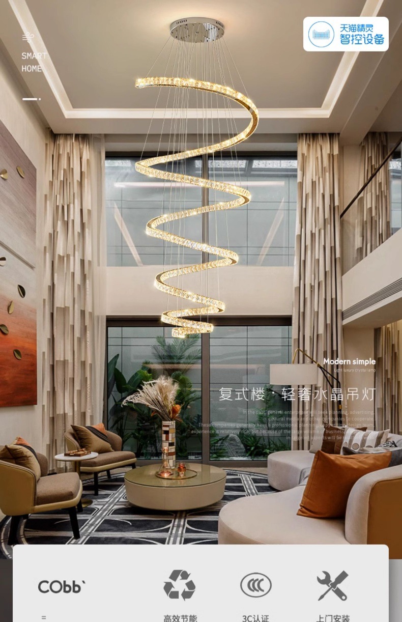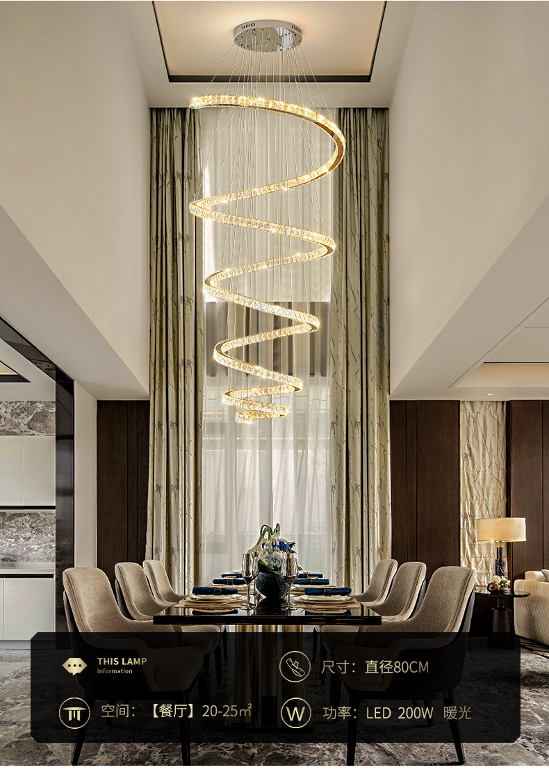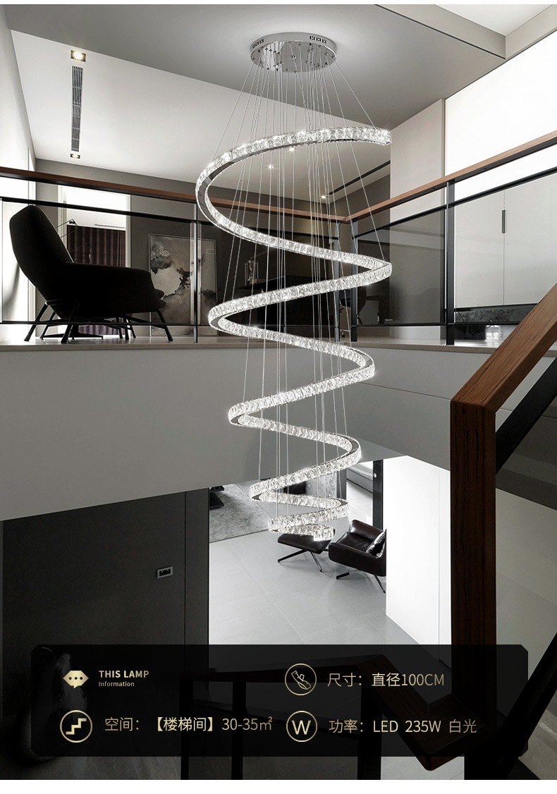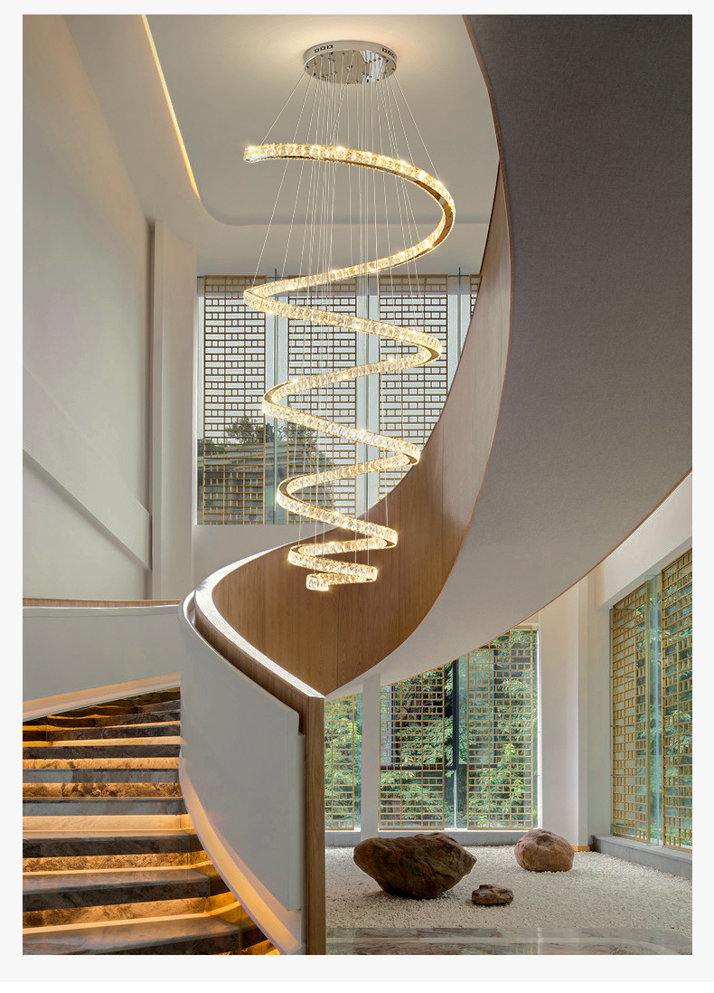 Lámpara de cristal lámpara de sala de estar lujosa villa dúplex gran lámpara elevación hueca escalera giratoria lámpara de lámpara larga lámpara de lámpara