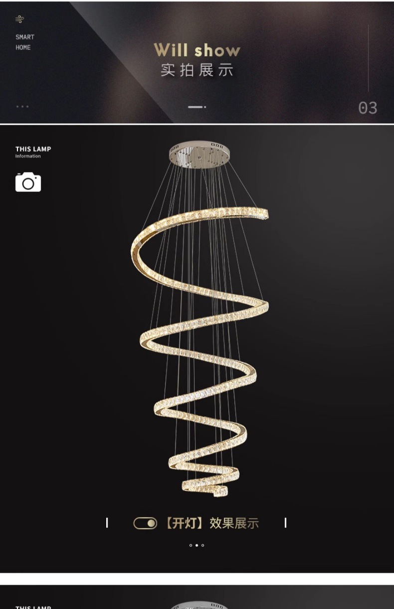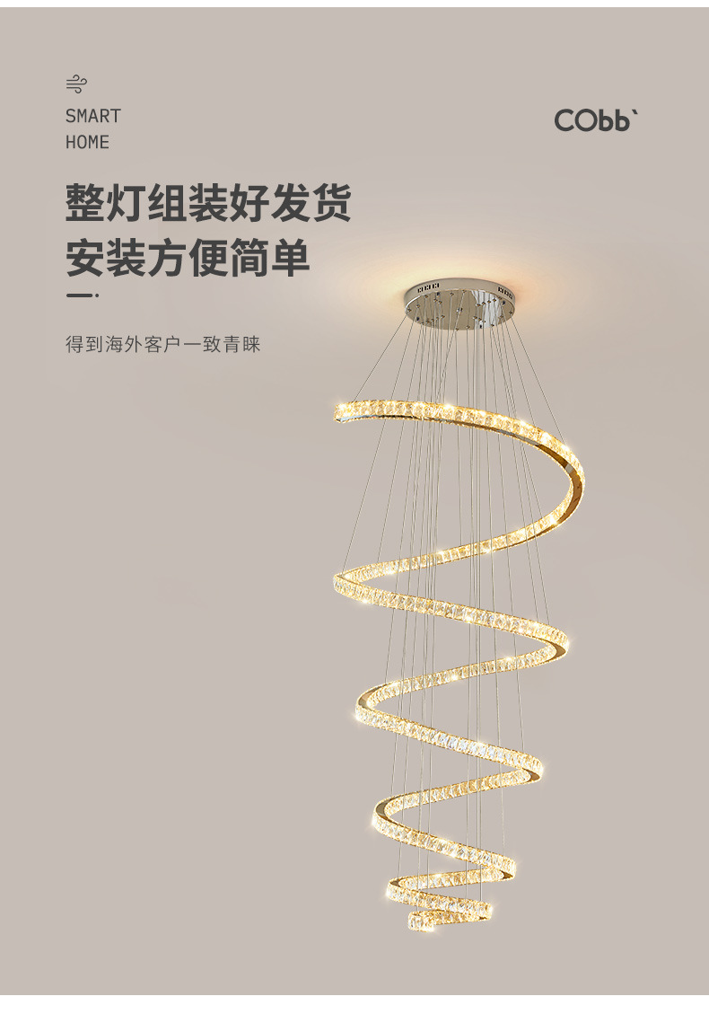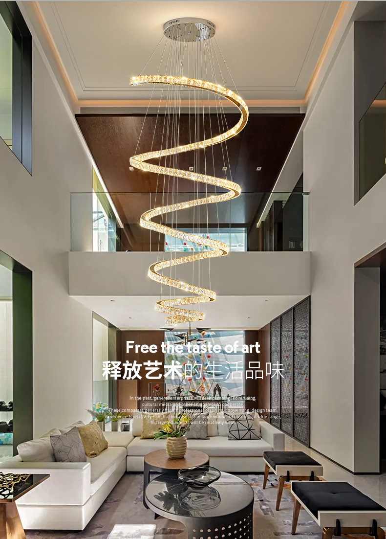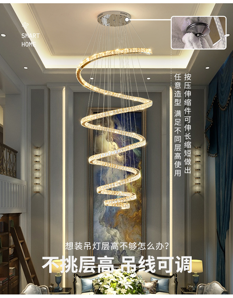 Lámpara de cristal lámpara de sala de estar lujosa villa dúplex gran lámpara elevación hueca escalera giratoria lámpara de lámpara larga lámpara de lámpara