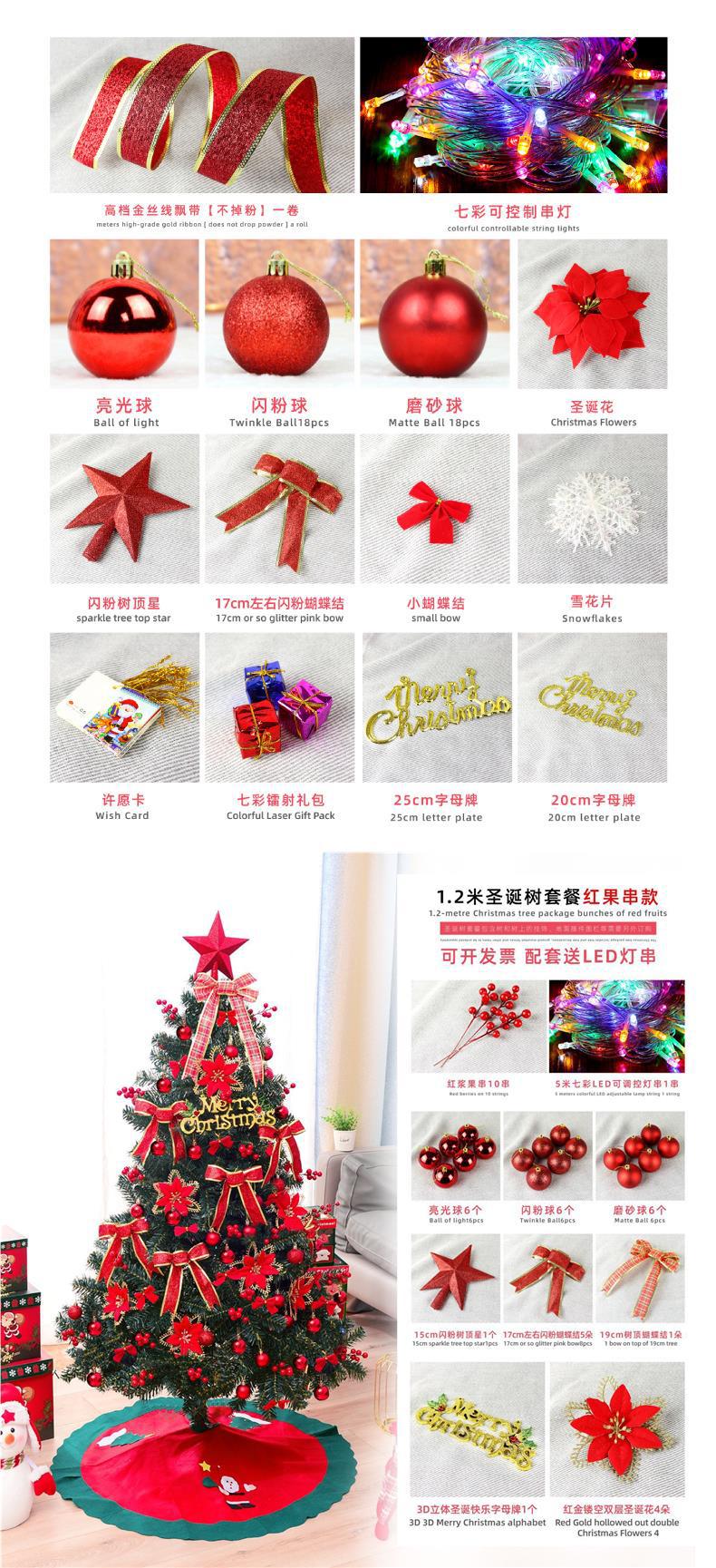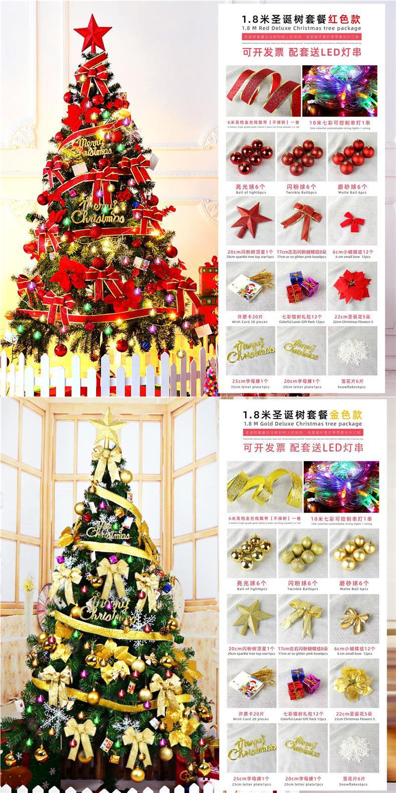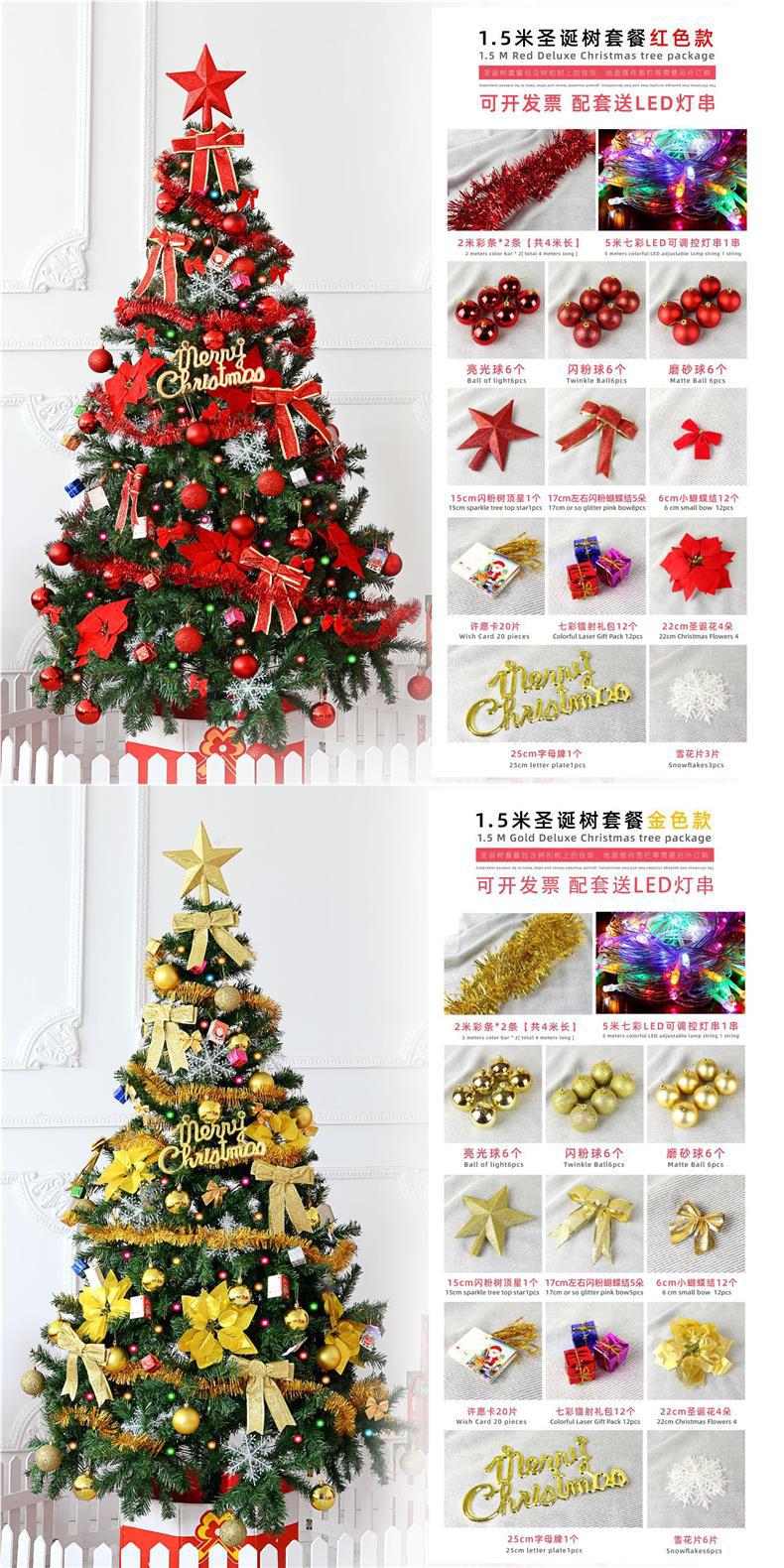 Paquete de Árbol de Navidad Transfronterizo de 1.5/1.8 Metros para Uso Doméstico, Juego de Decoración de Adornos para Árbol de Navidad Densos con Efecto de Nieve.