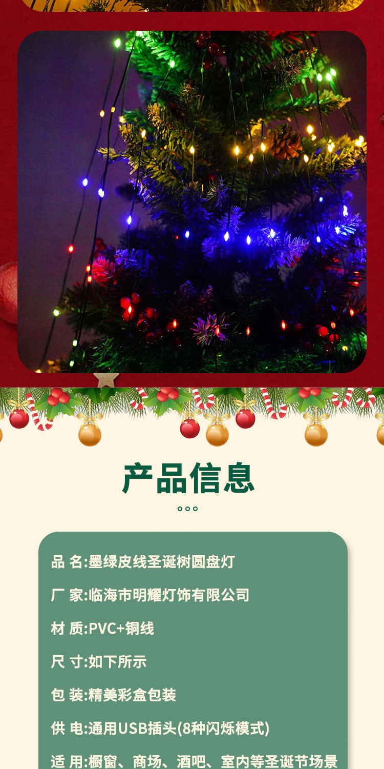 Transfronterizos nueva línea de cuero verde oscuro lámpara LED anillo de árbol de Navidad iluminación de techo decoración de cascada cadena de lámparas parpadeantes