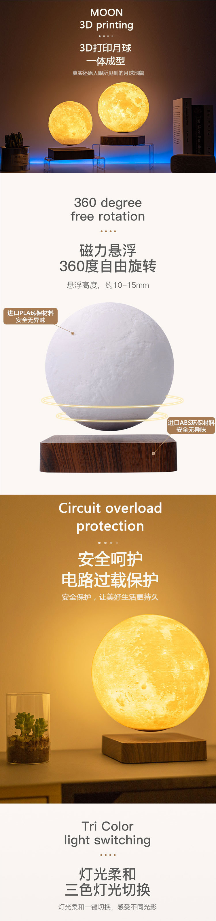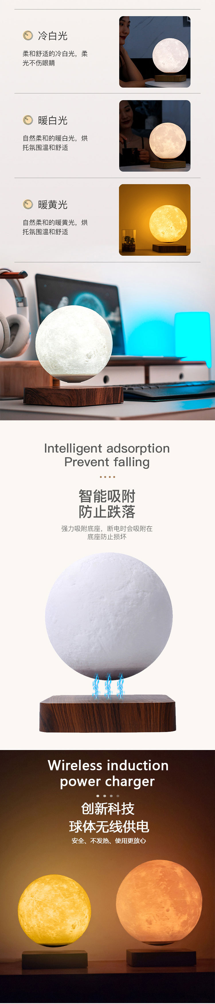 Lámpara lunar de levitación magnética con iones negativos atomizados, purificación de aire, lámpara de inducción inalámbrica, purificador de mesa de noche