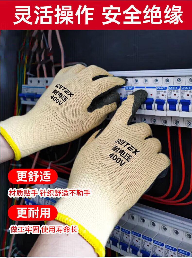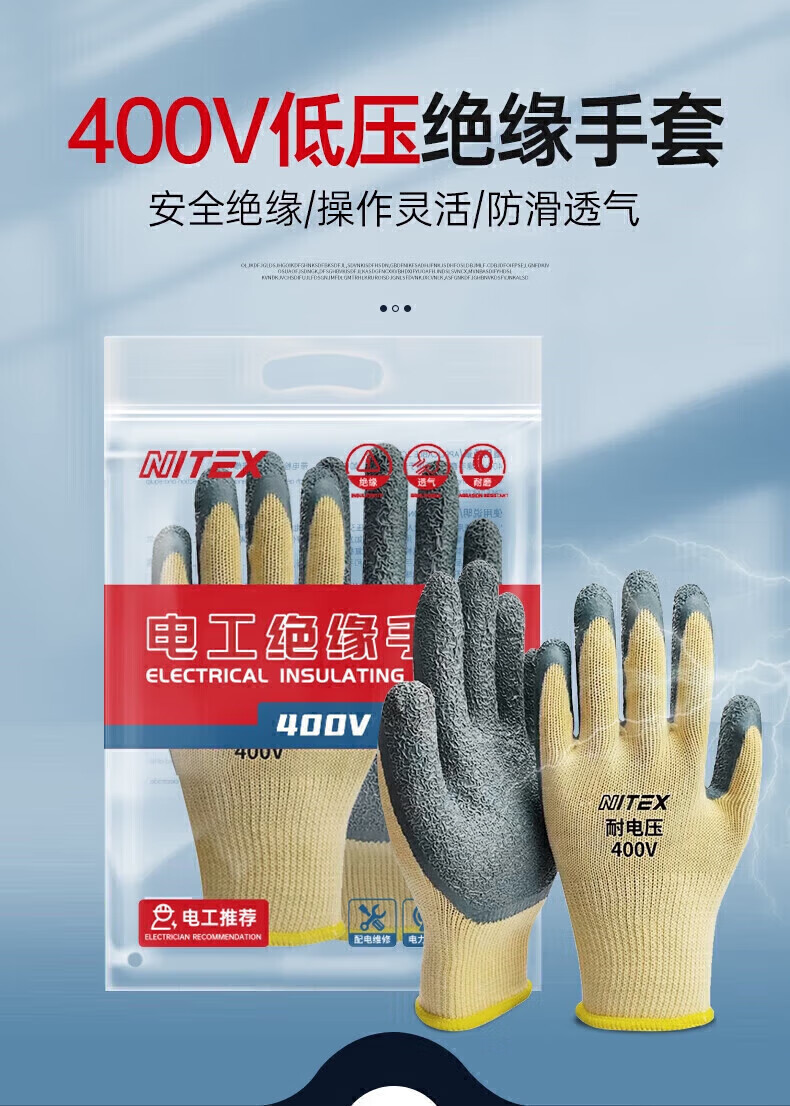 Guantes de goma de aislamiento de baja tensión genuinos NITEX 400V resistentes al desgaste guantes de aislamiento eléctrico para operaciones seguras