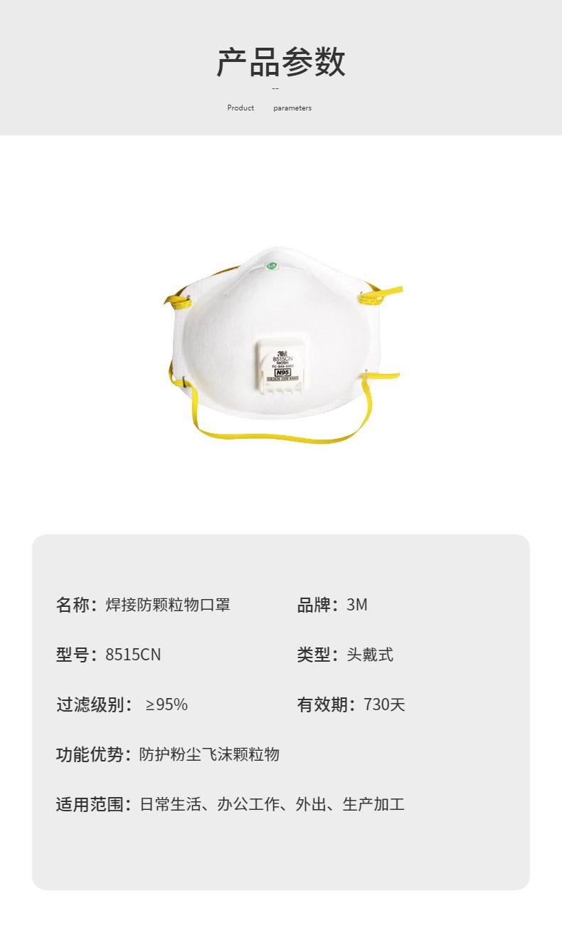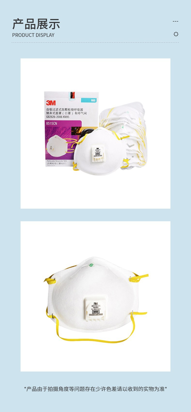 3M 8515CN N95 máscara de corte de metal soldada tipo correa de cabeza con válvula de respiración N95 a prueba de polvo y niebla 10 paquetes