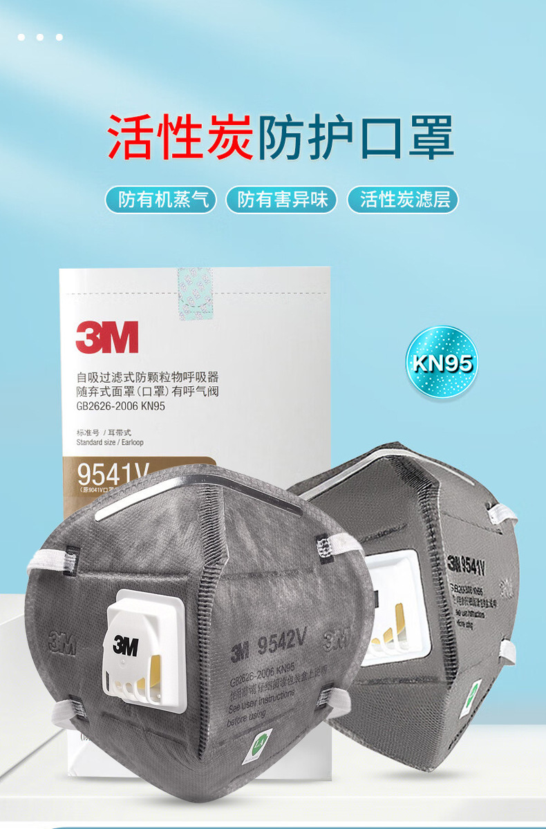 Máscara de polvo industrial KN95 con decoración montada en la cabeza, 3M 9542V/9541V, anti-formaldehído, venta al por mayor