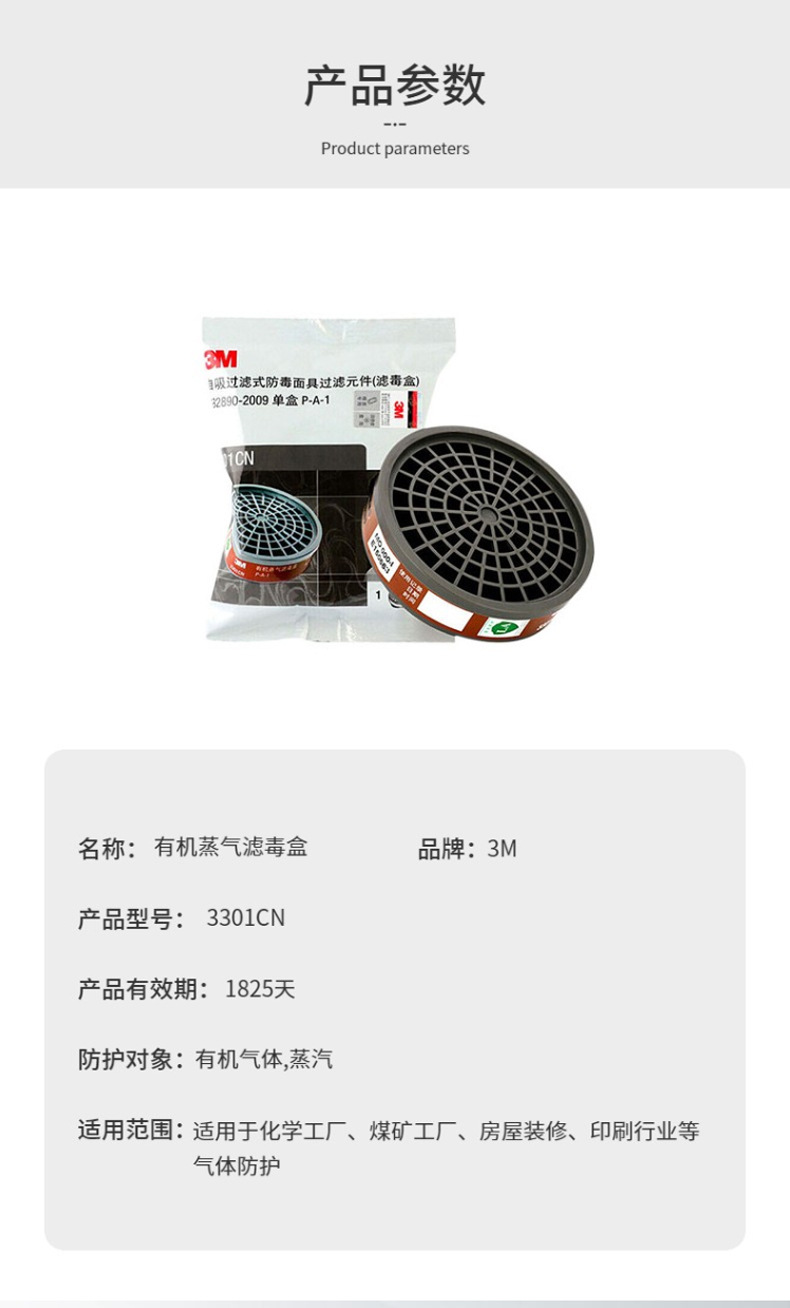 | Especificaciones y modelos | Caja de filtro de veneno 3M 3301CN,Caja de filtro de veneno 3M 3303CN,Caja de filtro de veneno 3M 3001CN |