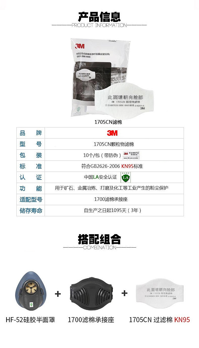 3M suministros de protección industrial Polvo granular 1705CN polvo máscara filtro algodón 1211 máscara filtro algodón