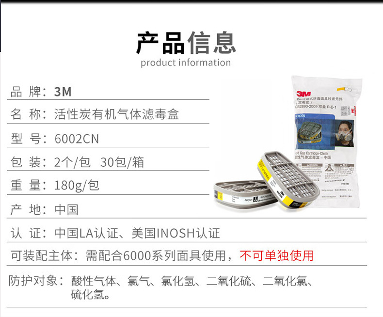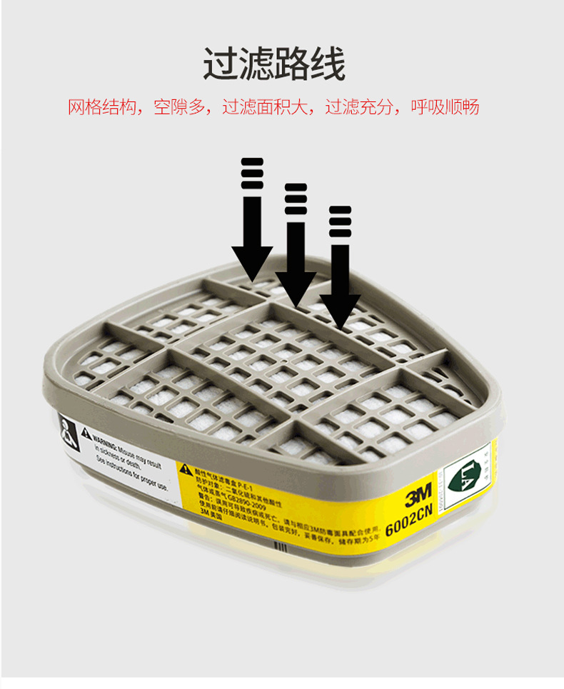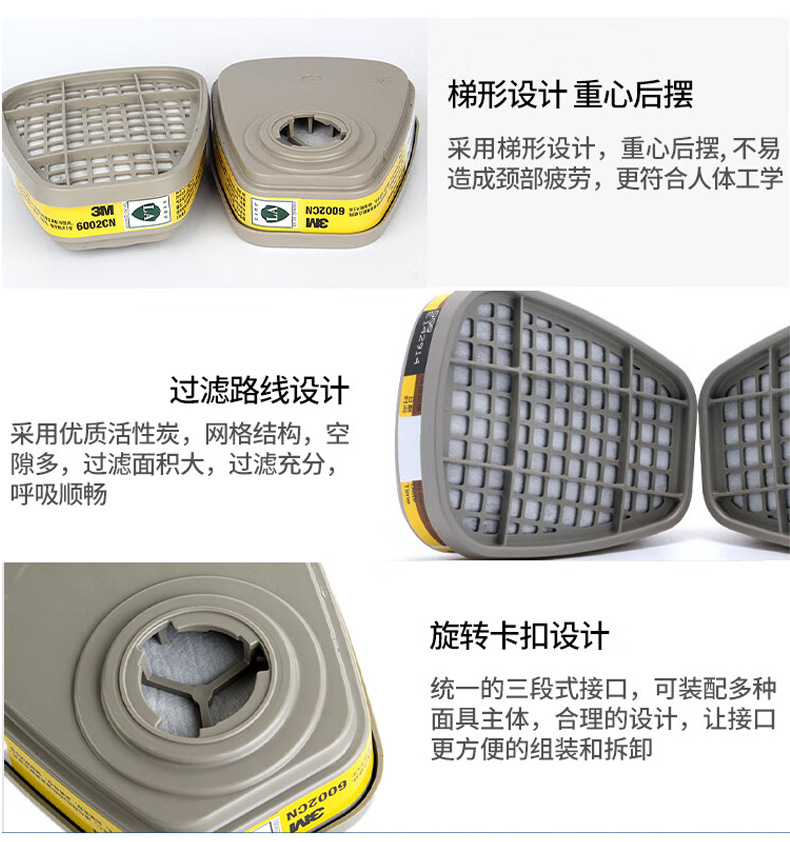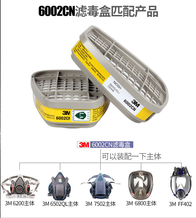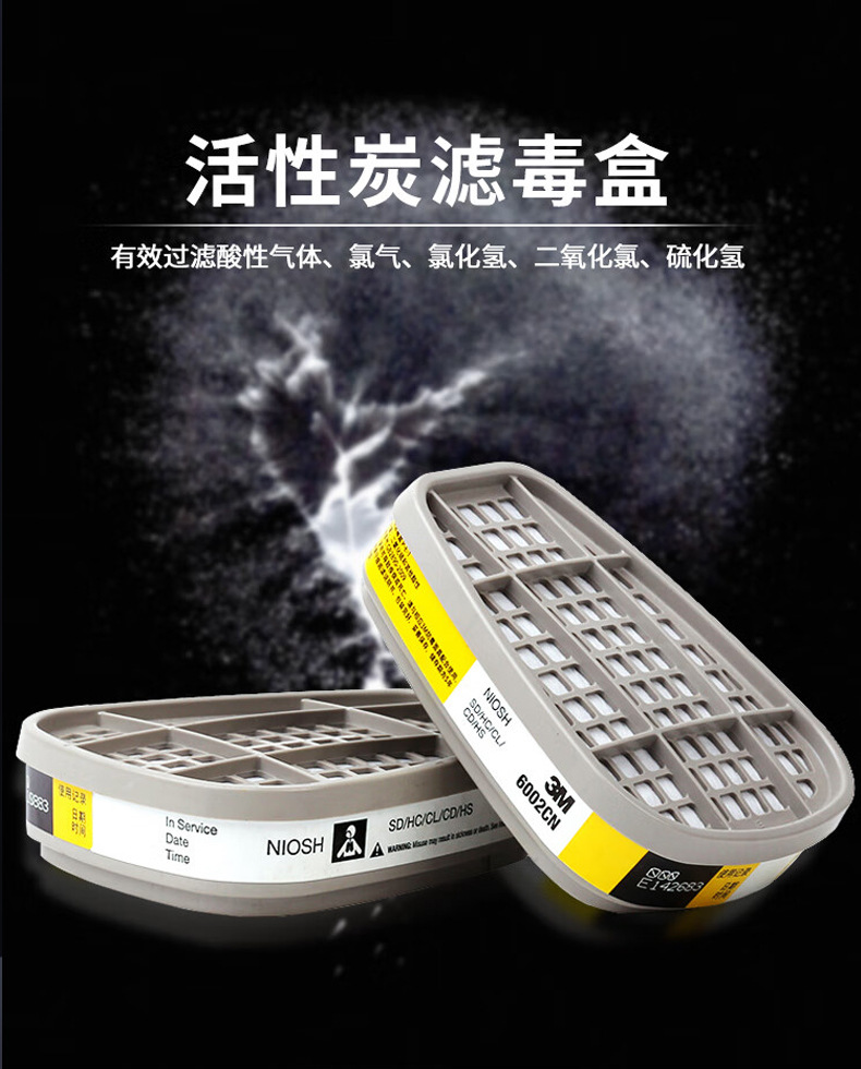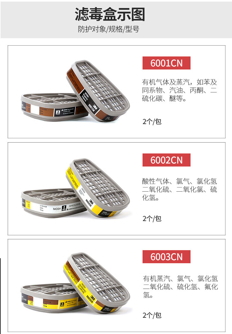 3m6002cn veneno caja de filtro Industria química laboratorio ácido gas carbón protección suministros caja de filtro de carbón activado