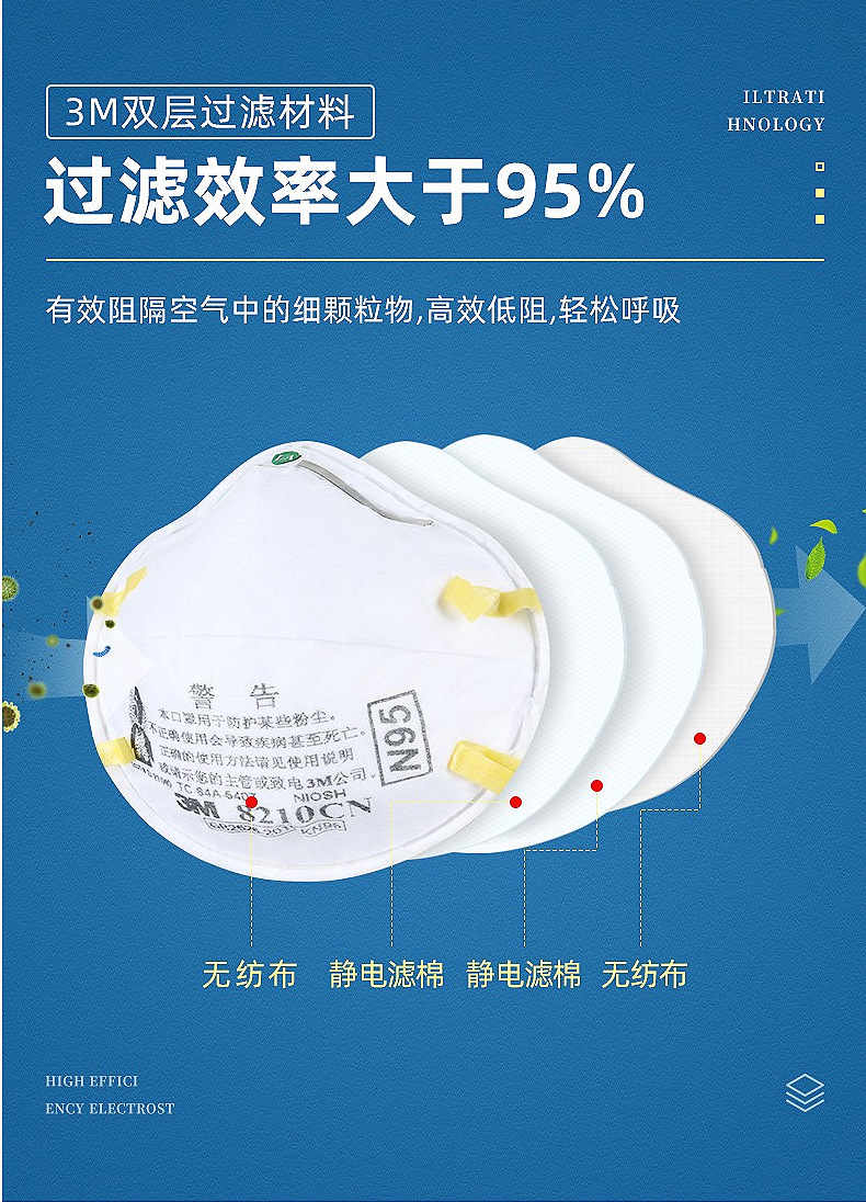 3M máscara al por mayor 8210cn Haze polvo industrial pulido carbón mina de partículas de materia montado en la cabeza máscara de polvo N95