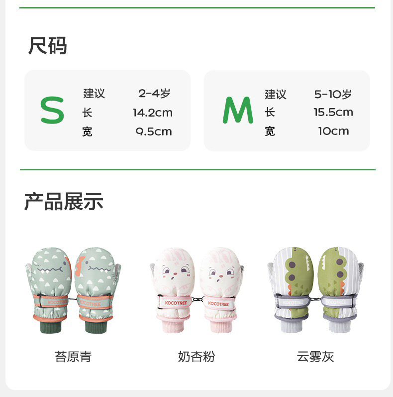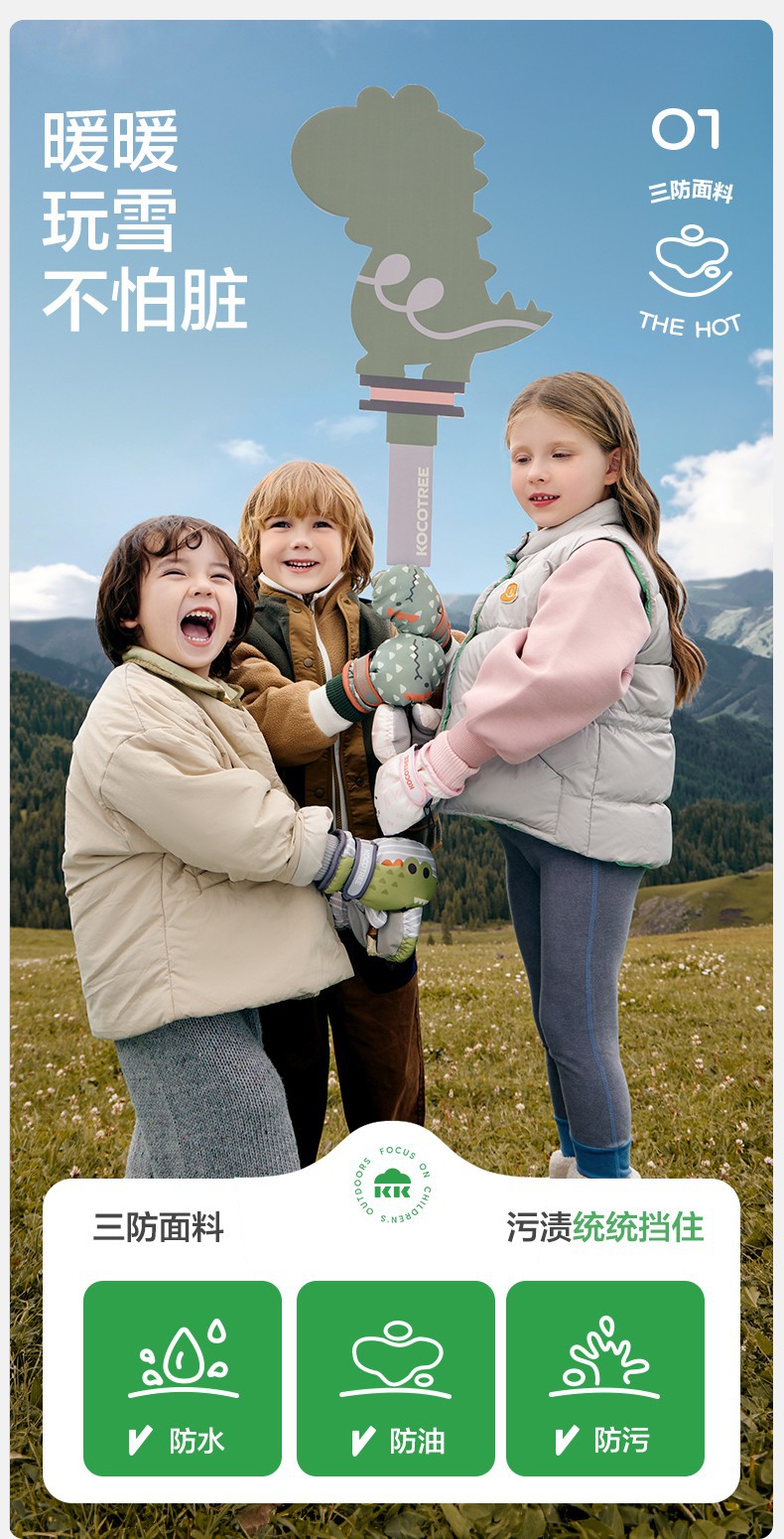 Guantes de árbol KK para niños niños niños niñas guantes de esquí de invierno bebés con terciopelo para jugar con nieve especial antideslizante impermeable