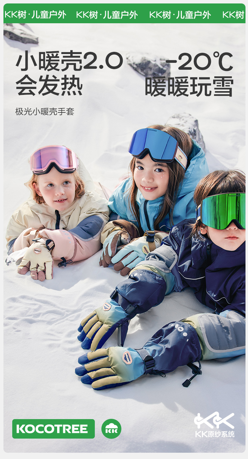 Guantes de árbol KK para niños de invierno esquí impermeable cinco dedos 2024 nuevo niño niñas profesional caliente y grueso a prueba de viento