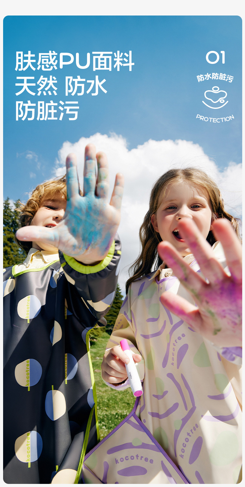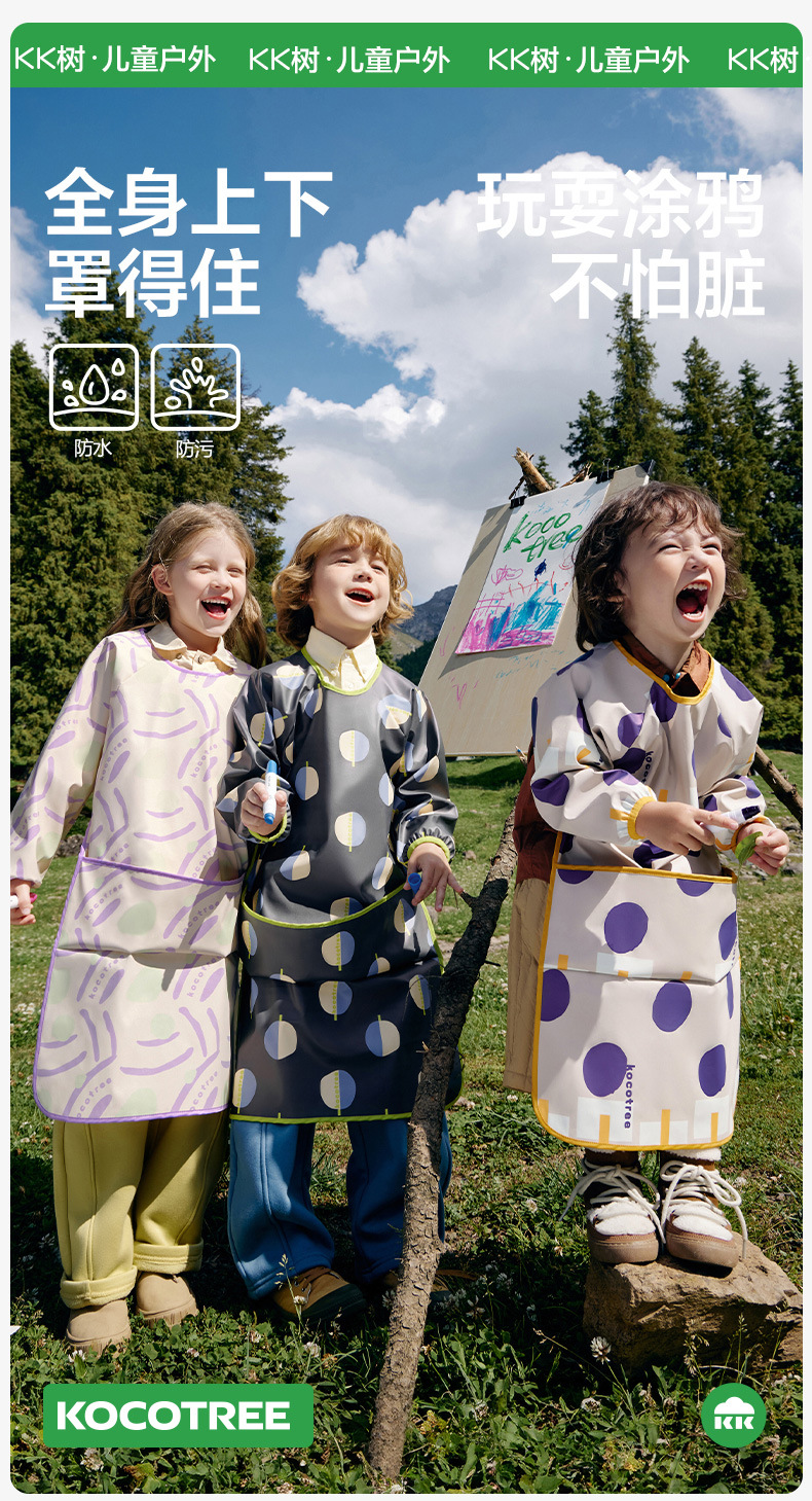 KK árbol delantal impermeable para niños, pintura de ropa para niños, ropa para niñas, ropa para bebés, pintura para artistas
