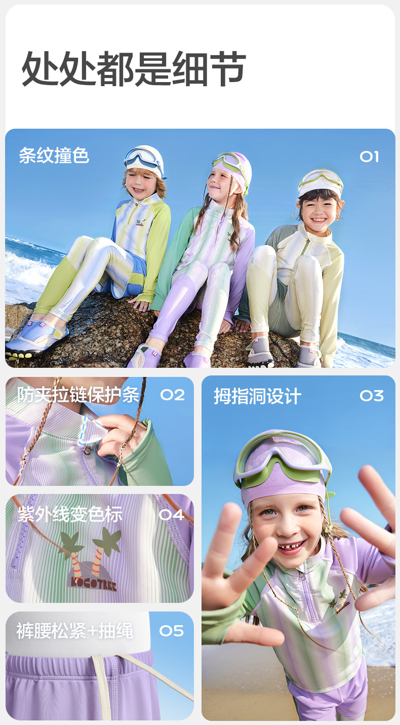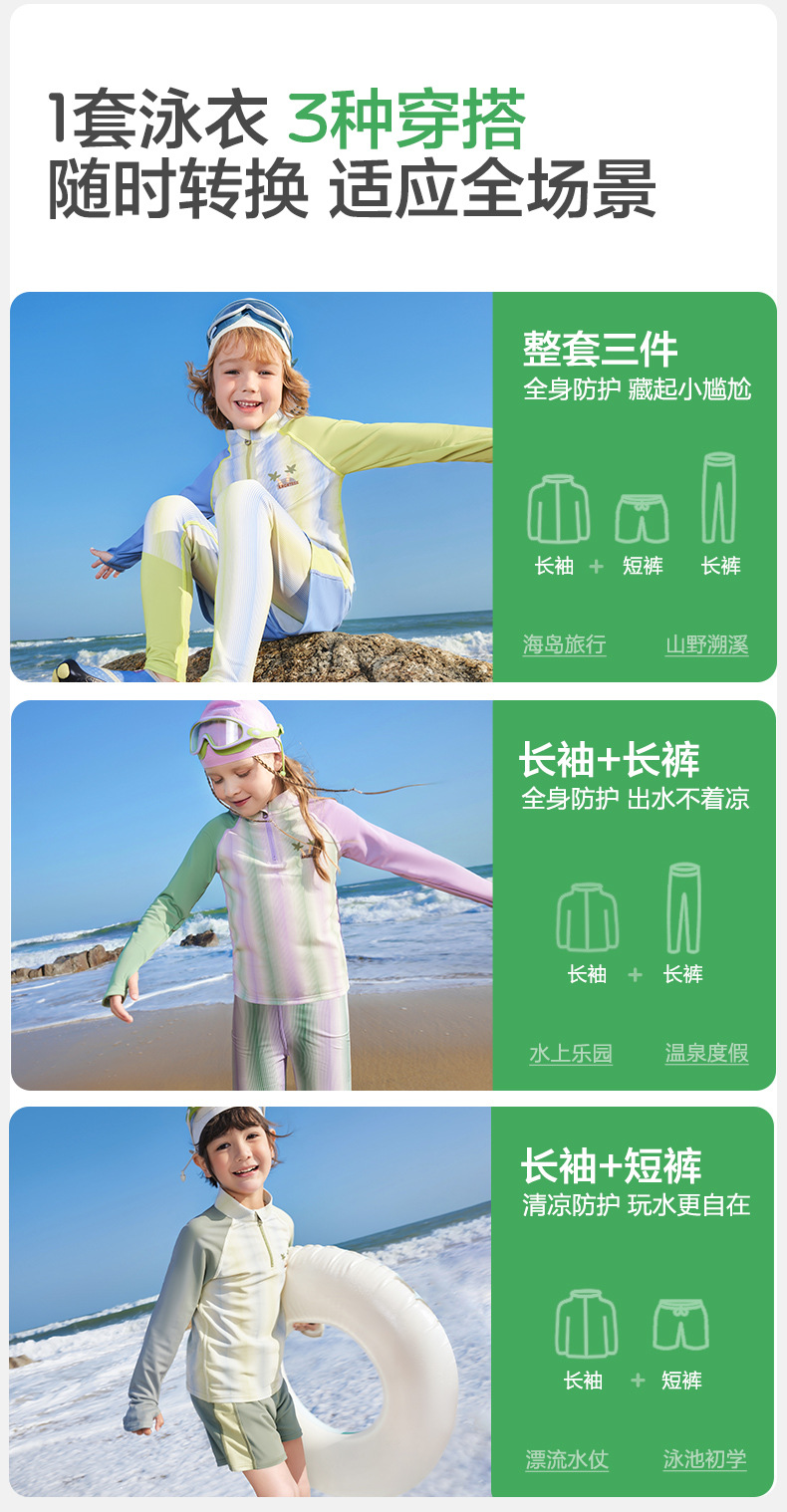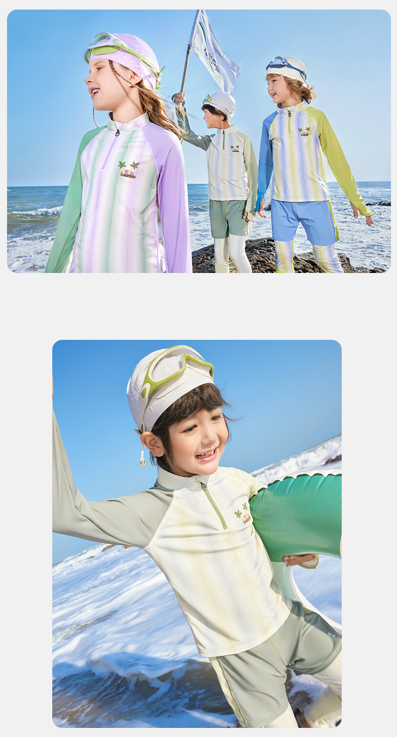 KK Tree Traje de baño para niños, niño, niña, bebé, manga larga dividida, ropa de natación de tres piezas, aguas termales, protección solar junto al mar
