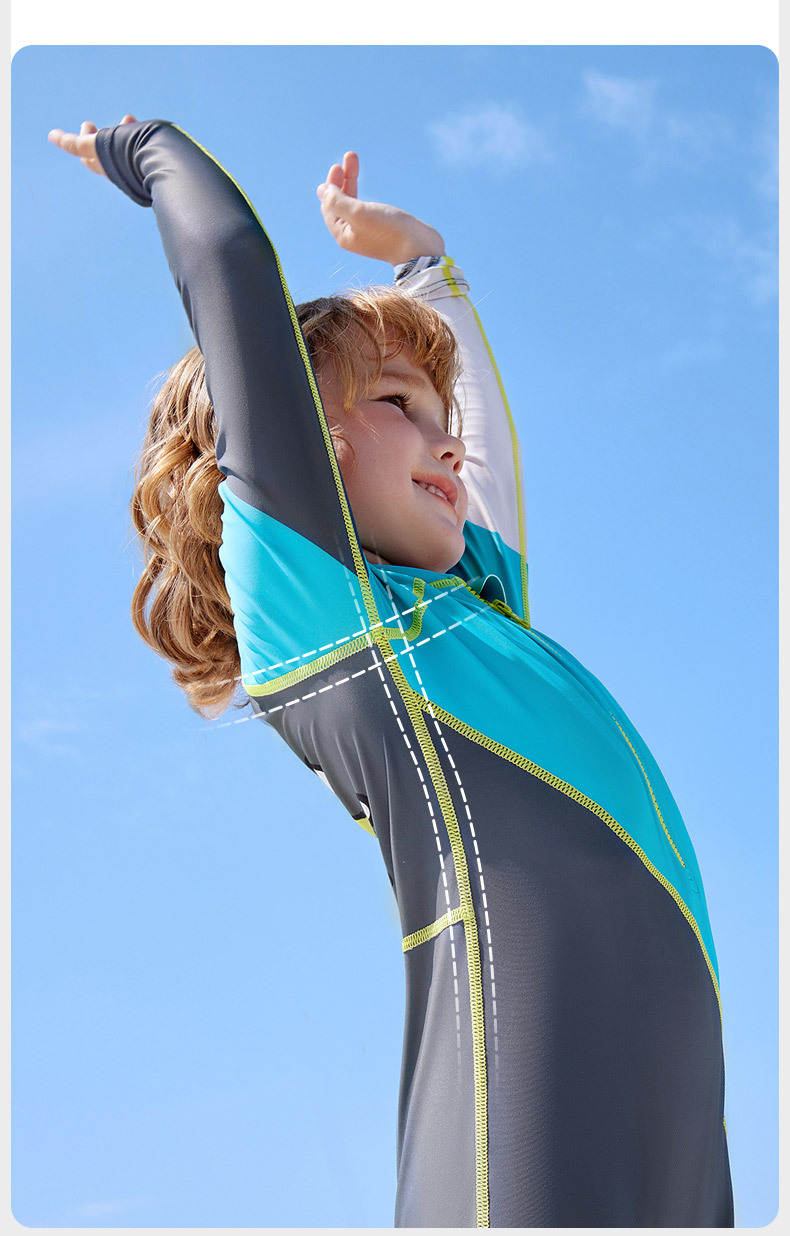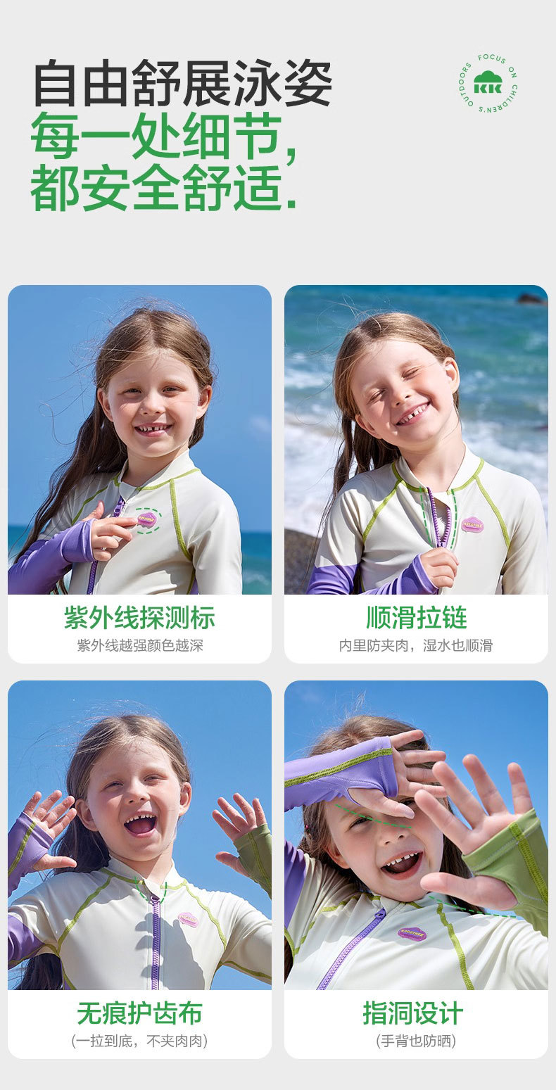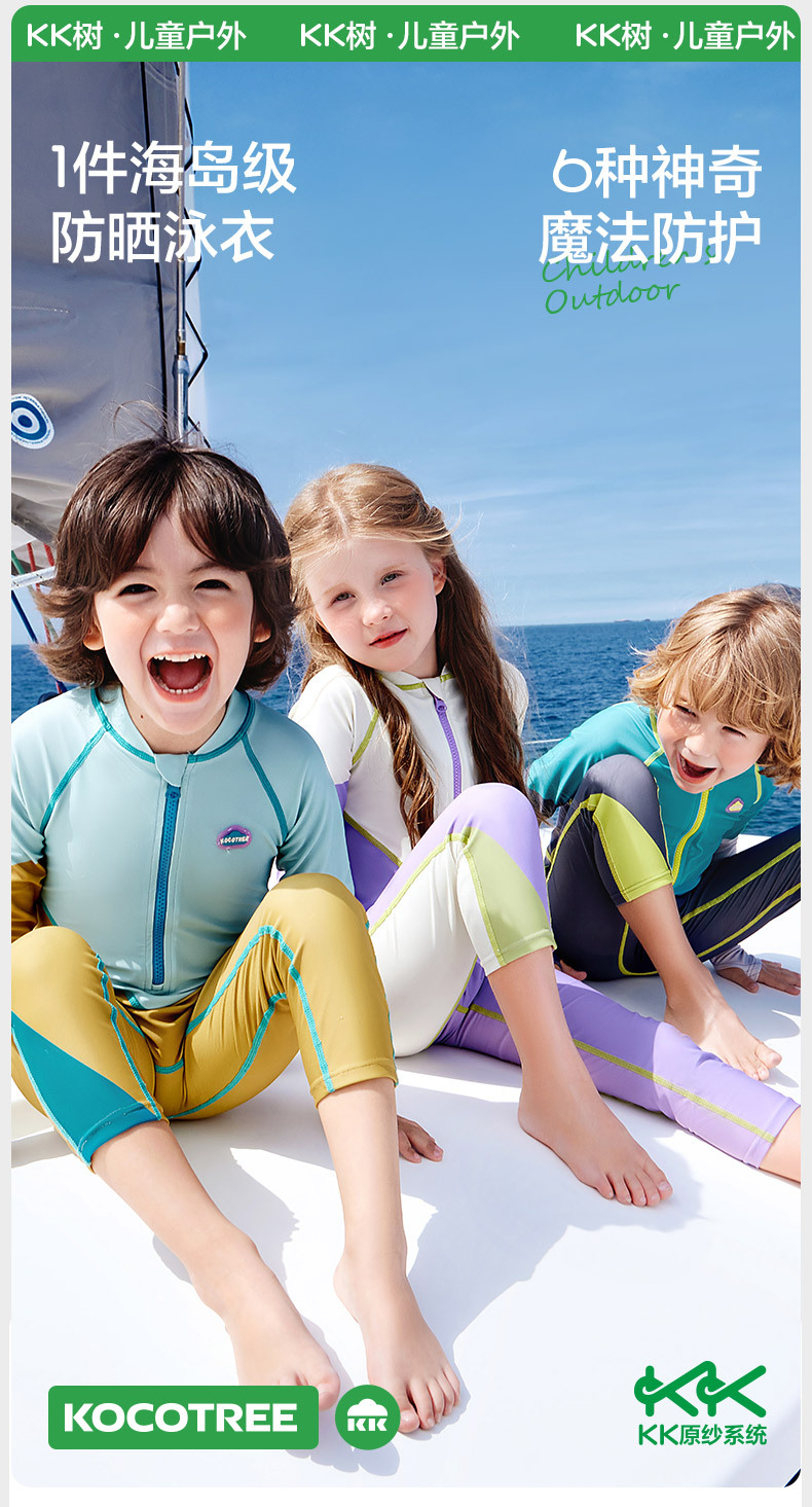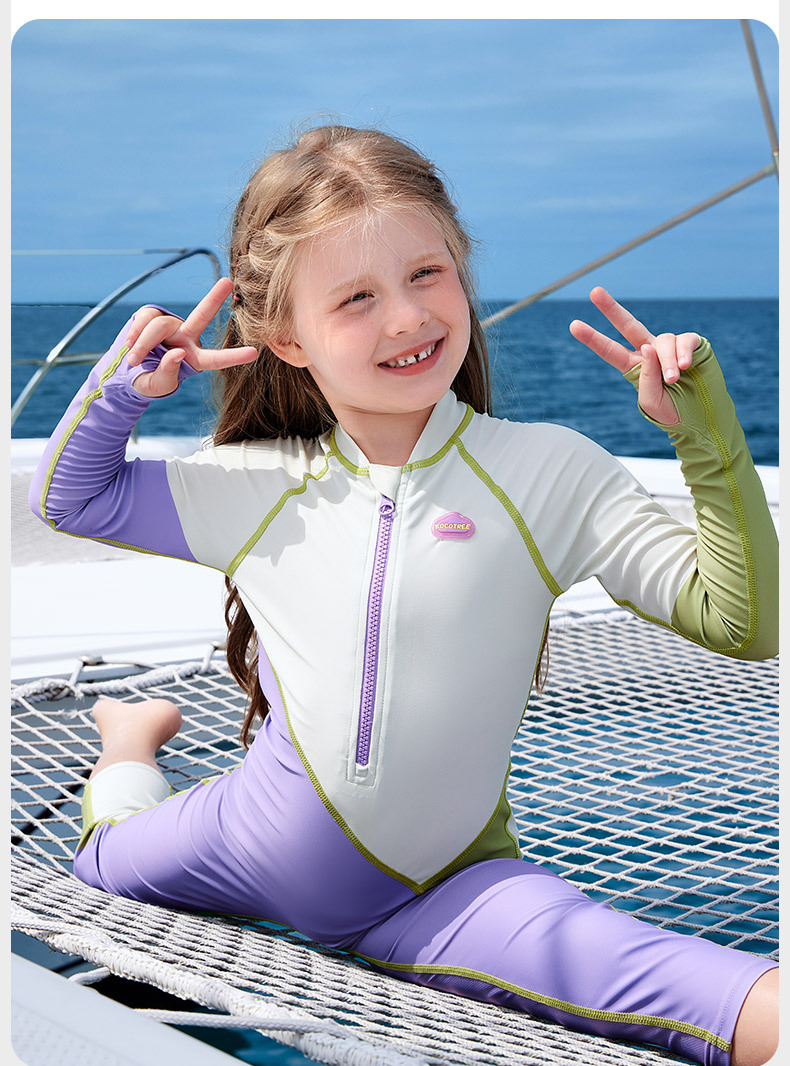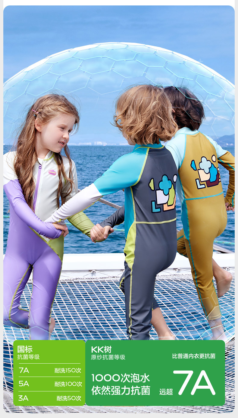 KK árbol traje de baño de una pieza para niños hilo original protector solar antibacteriano y resistente al cloro niña natación de manga larga bebé