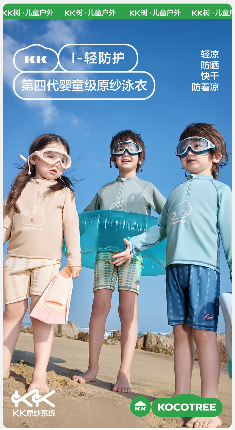 KK árbol traje de baño de bebé dividido de manga larga protector solar bañador para niños traje de baño niño niña 2025 nuevo
