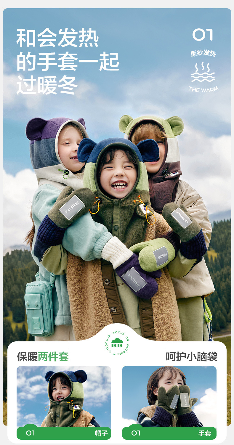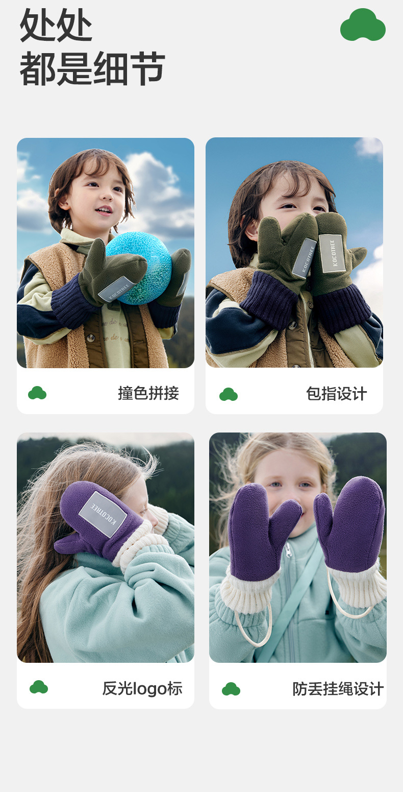 Guantes para niños de hilo KK árbol de invierno para bebés con dedos de otoño para niños y niñas estudiantes de primaria caliente de clase A antiestática