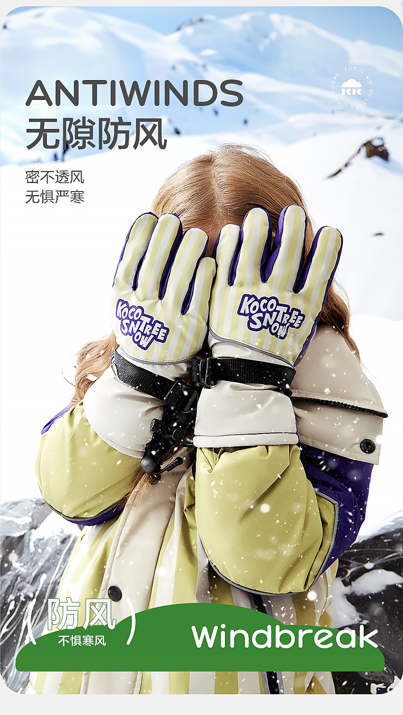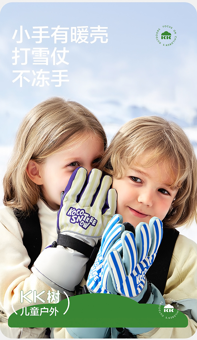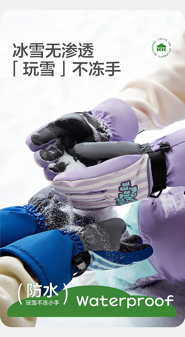 KK árbol guantes de esquí para niños invierno Cálido impermeable frío polar forrado engrosado cinco dedos niños niñas niños de la escuela primaria