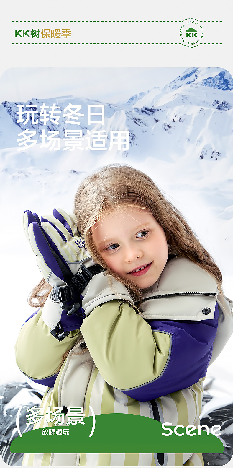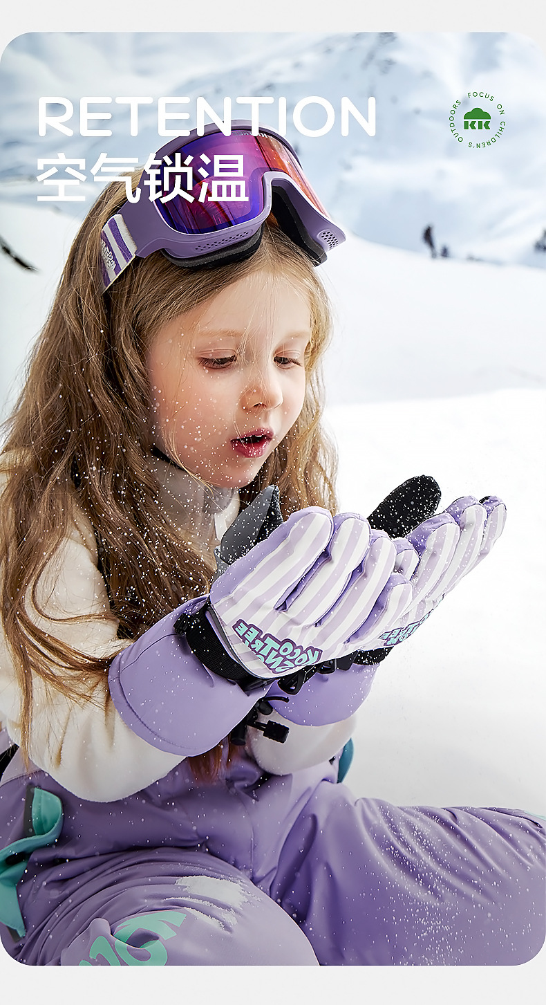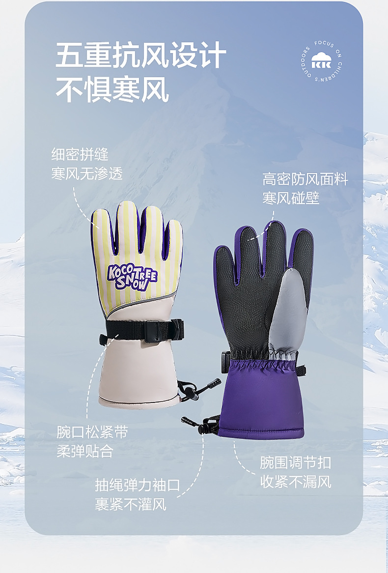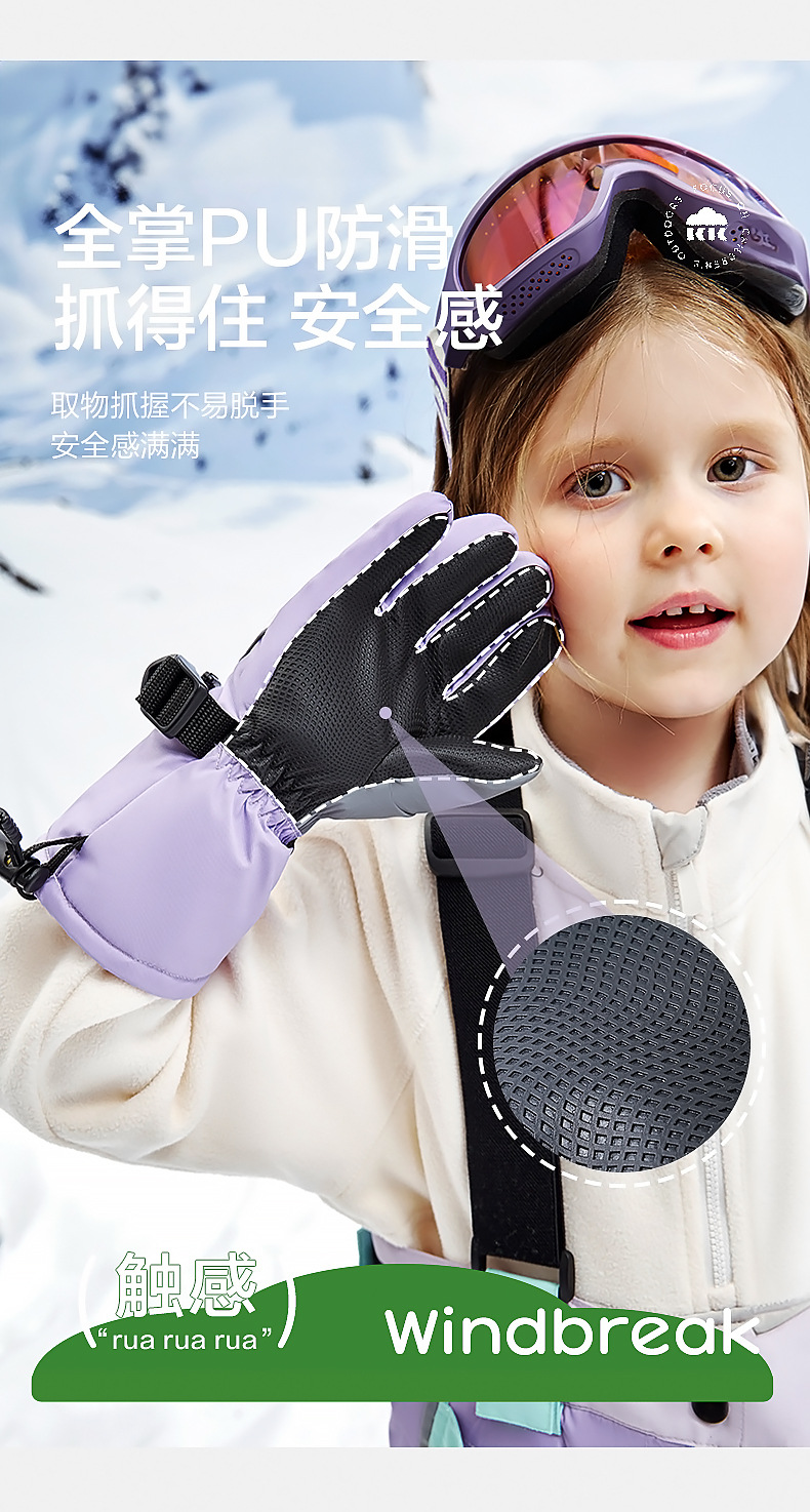 KK árbol guantes de esquí para niños invierno Cálido impermeable frío polar forrado engrosado cinco dedos niños niñas niños de la escuela primaria