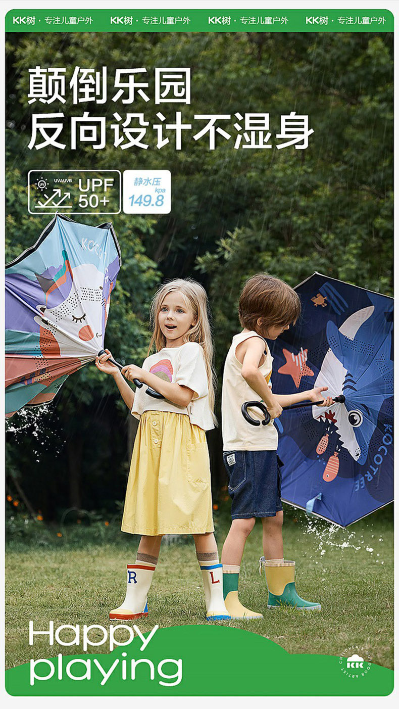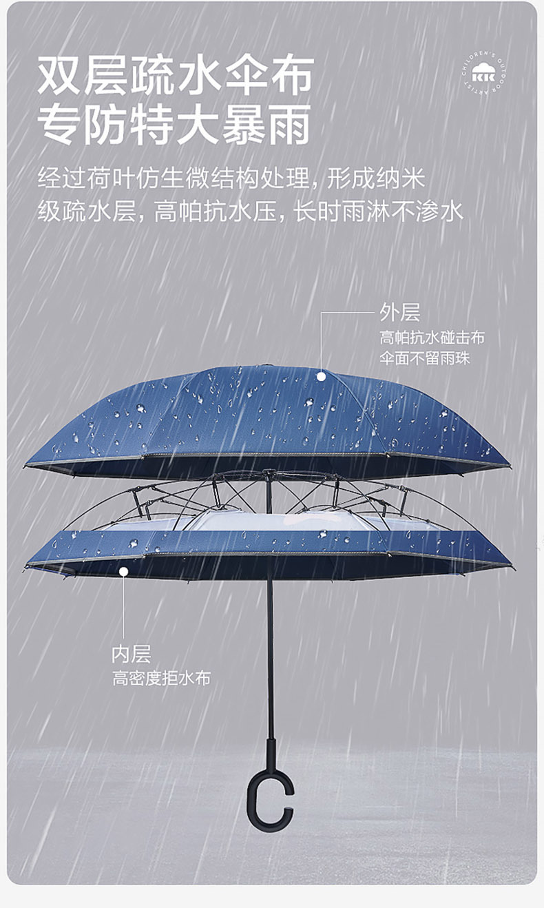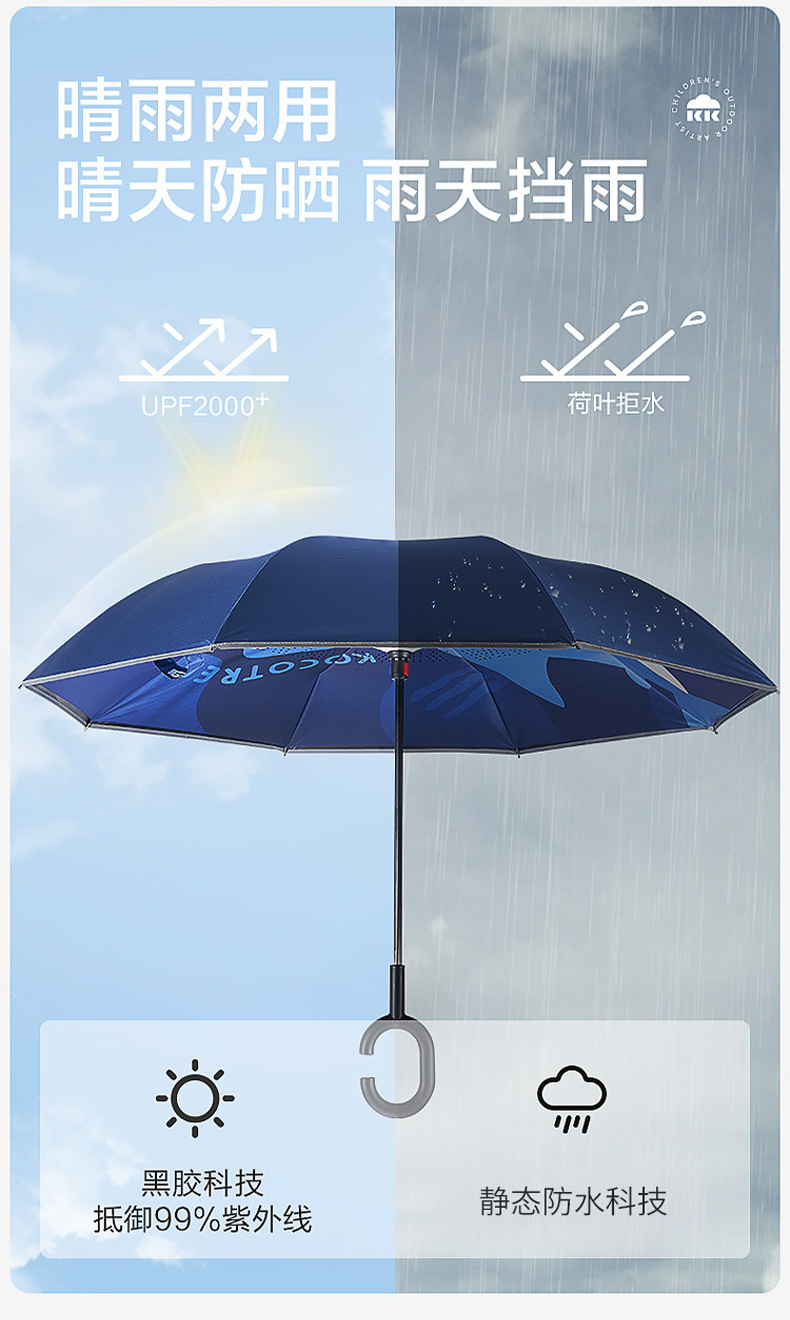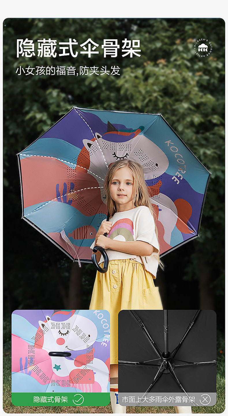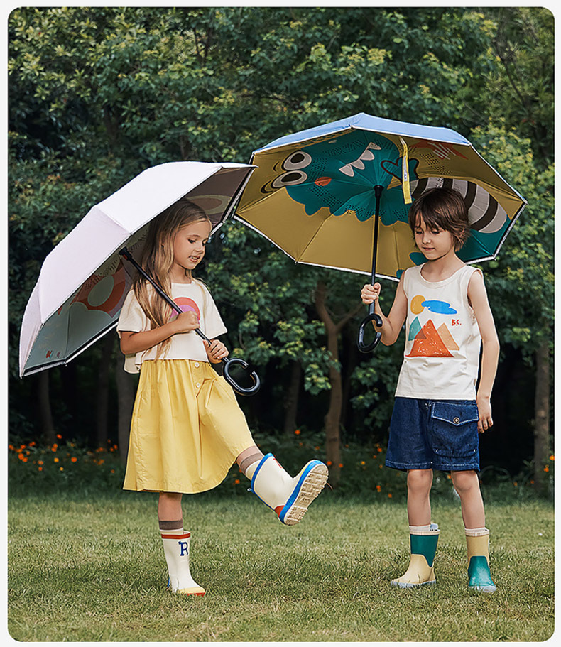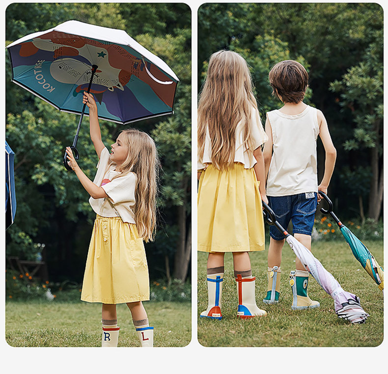 KK Tree Paraguas infantil niña niño lluvia inversa de doble uso bebé Escuela de jardín de infantes Paraguas de mango largo redondeado especial