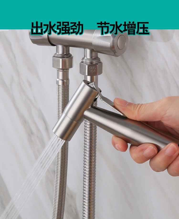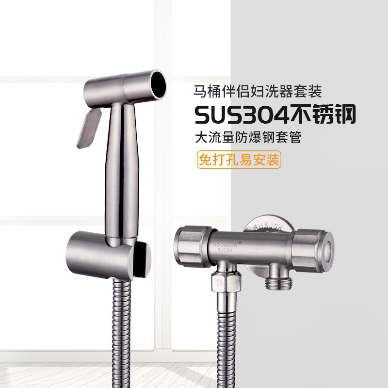 Acero inoxidable transfronterizo inodoro compañero conjunto de pistola de pulverización lavador de mujer grifo boquilla de pulverización presurizada pistola de pulverización de lavado inodoro