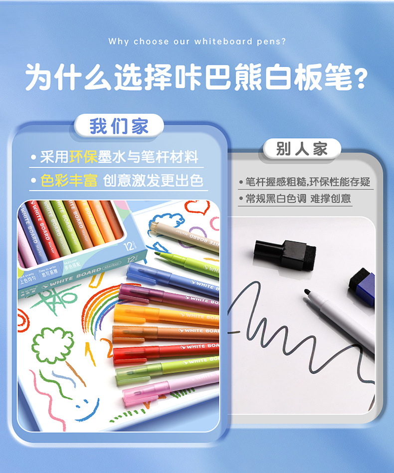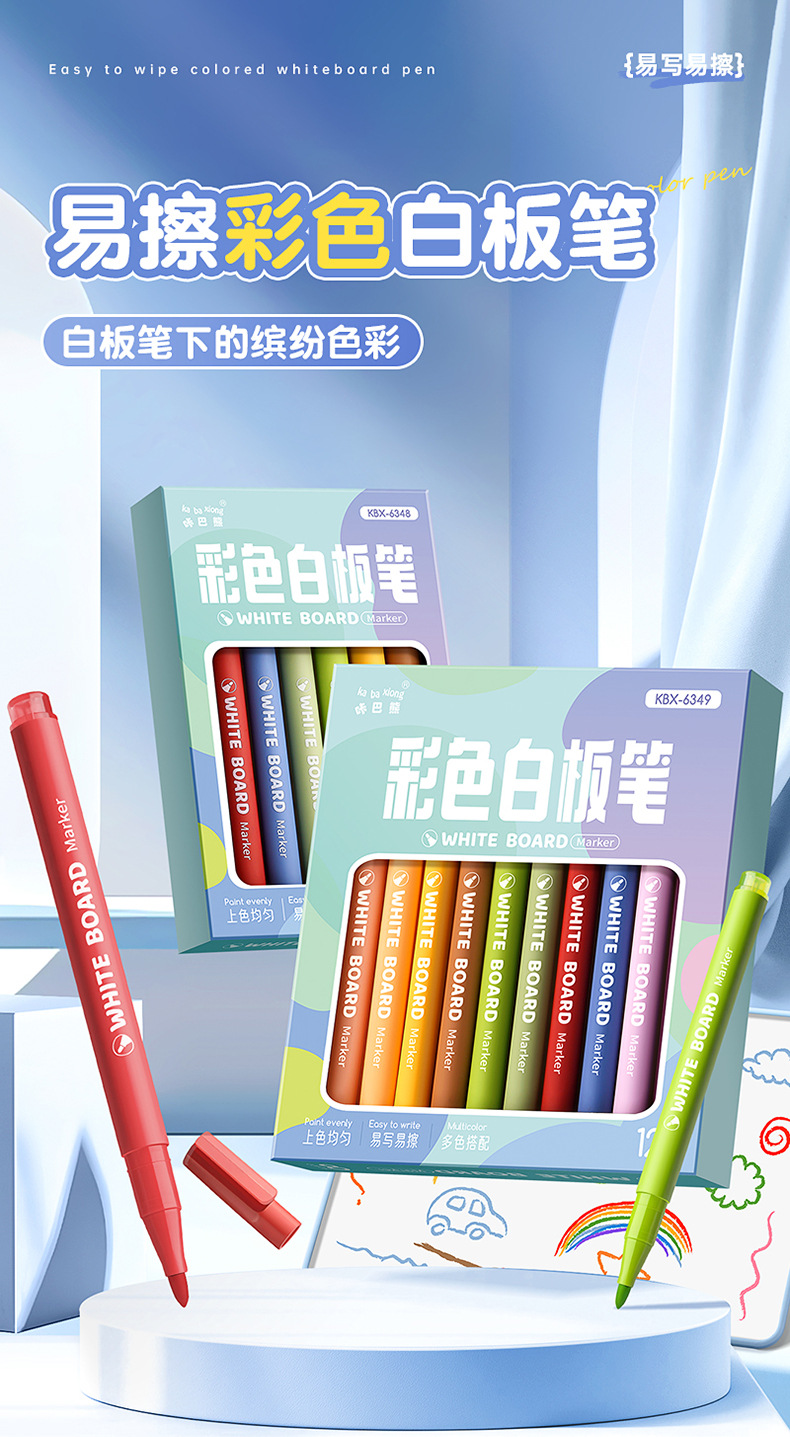 Bolígrafo de pizarra de color borrable Kaba Bear 12 colores para la enseñanza de niños Bolígrafo de tablero de dibujo de pizarra borrable multicolor