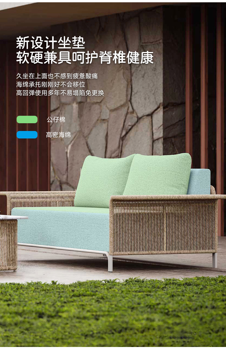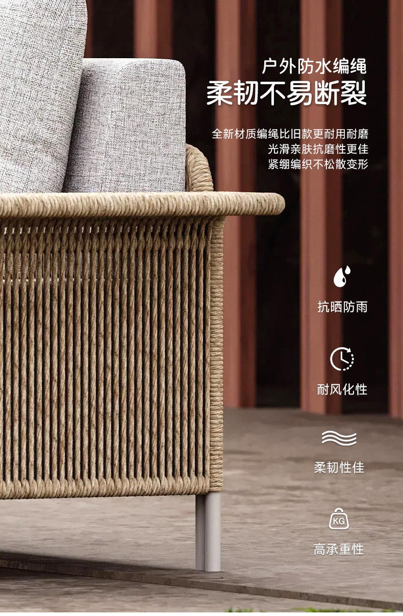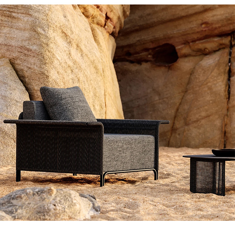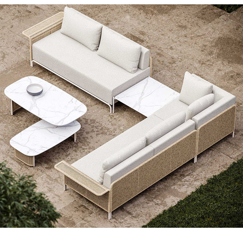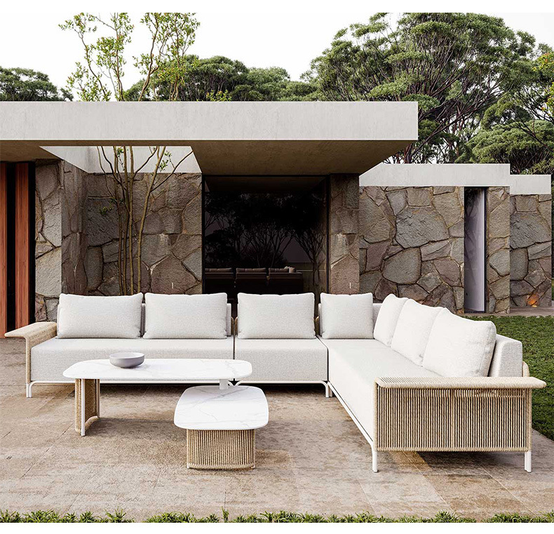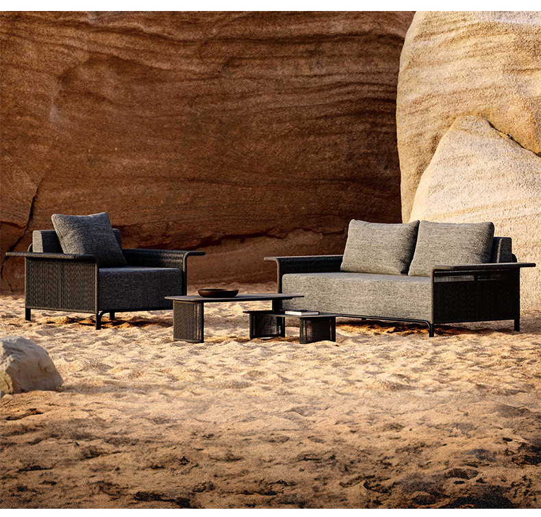 Sofá al aire libre patio trenzado combinación de silla de caña impermeable solar jardín villa terraza de alojamiento nórdico muebles de esquina
