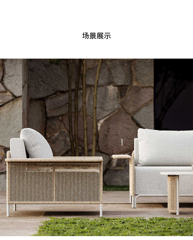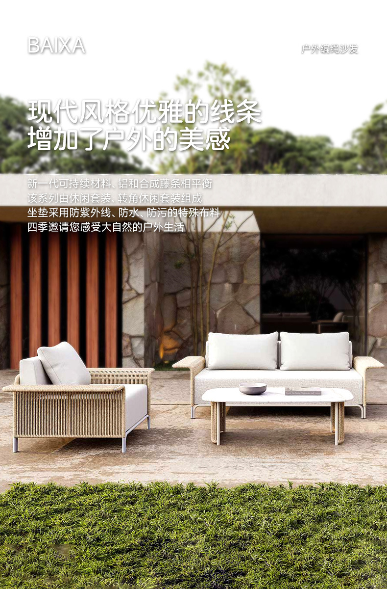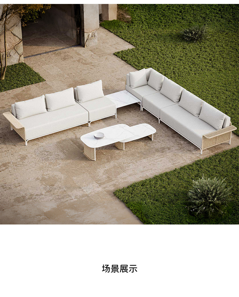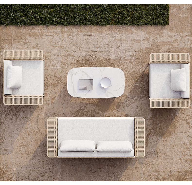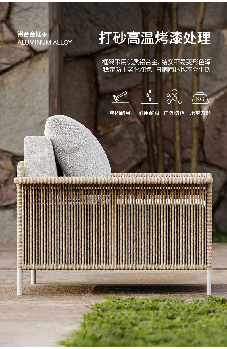 Sofá al aire libre patio trenzado combinación de silla de caña impermeable solar jardín villa terraza de alojamiento nórdico muebles de esquina