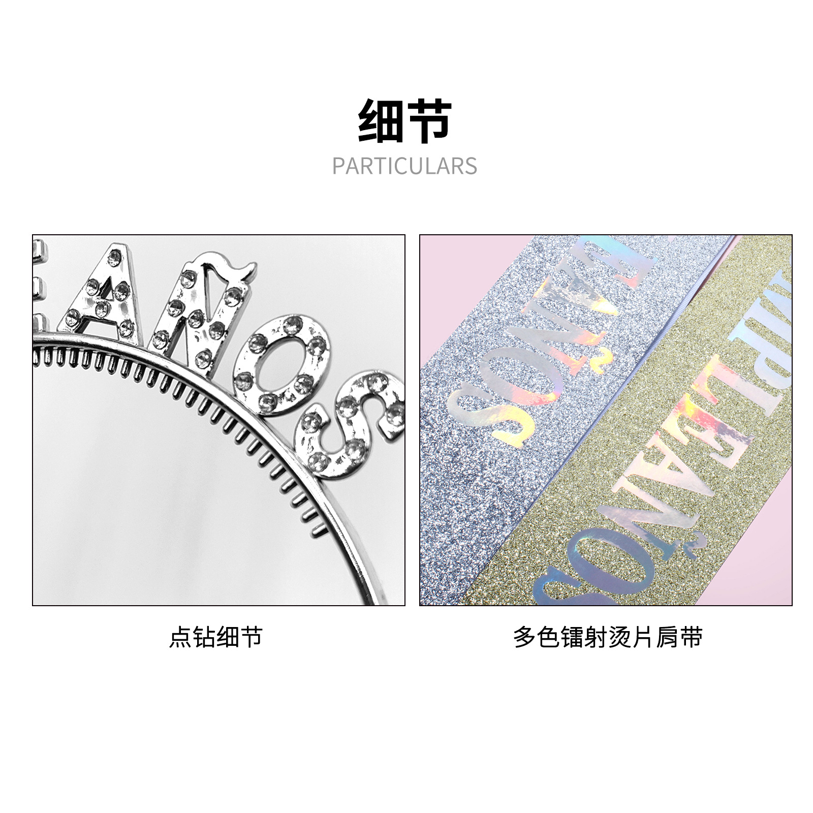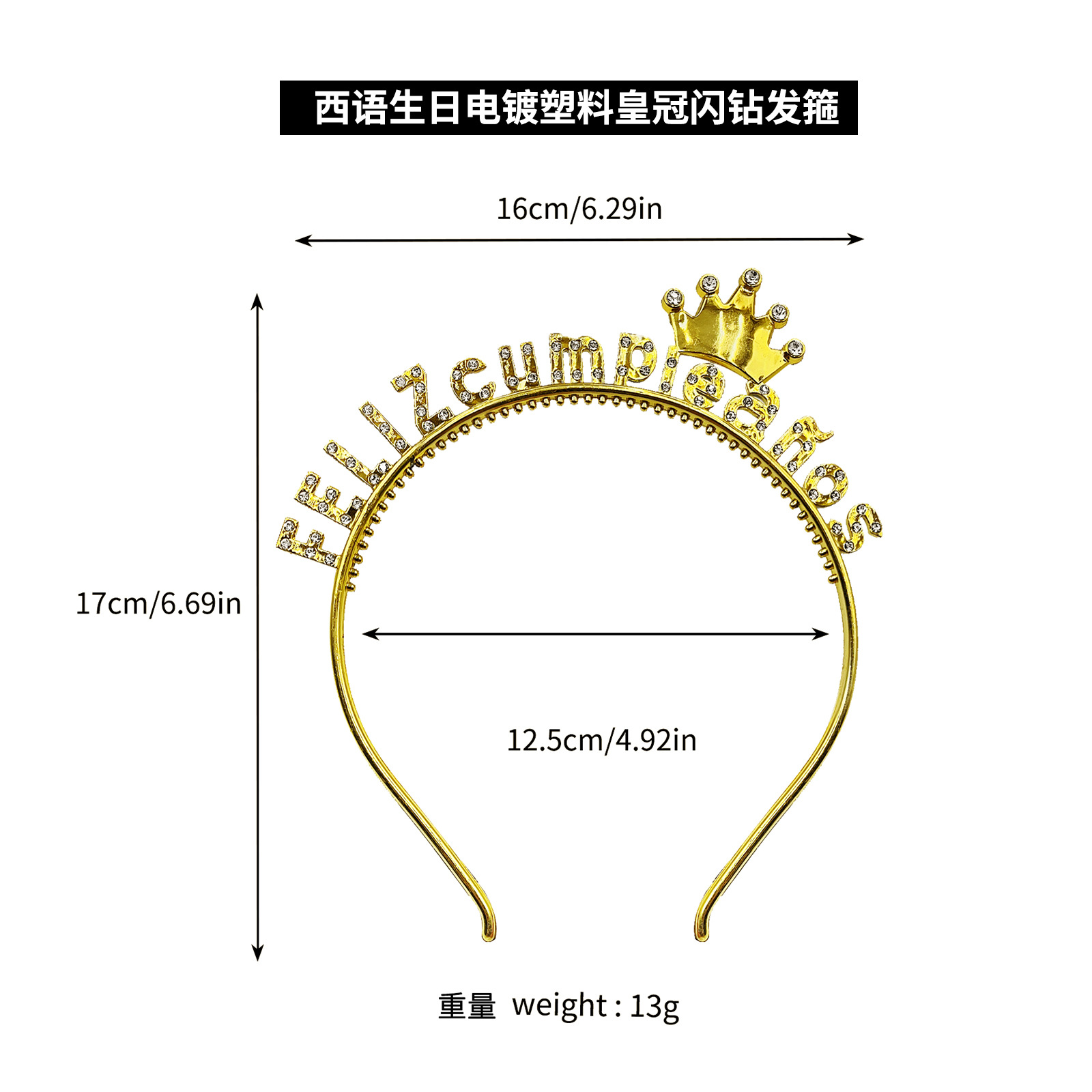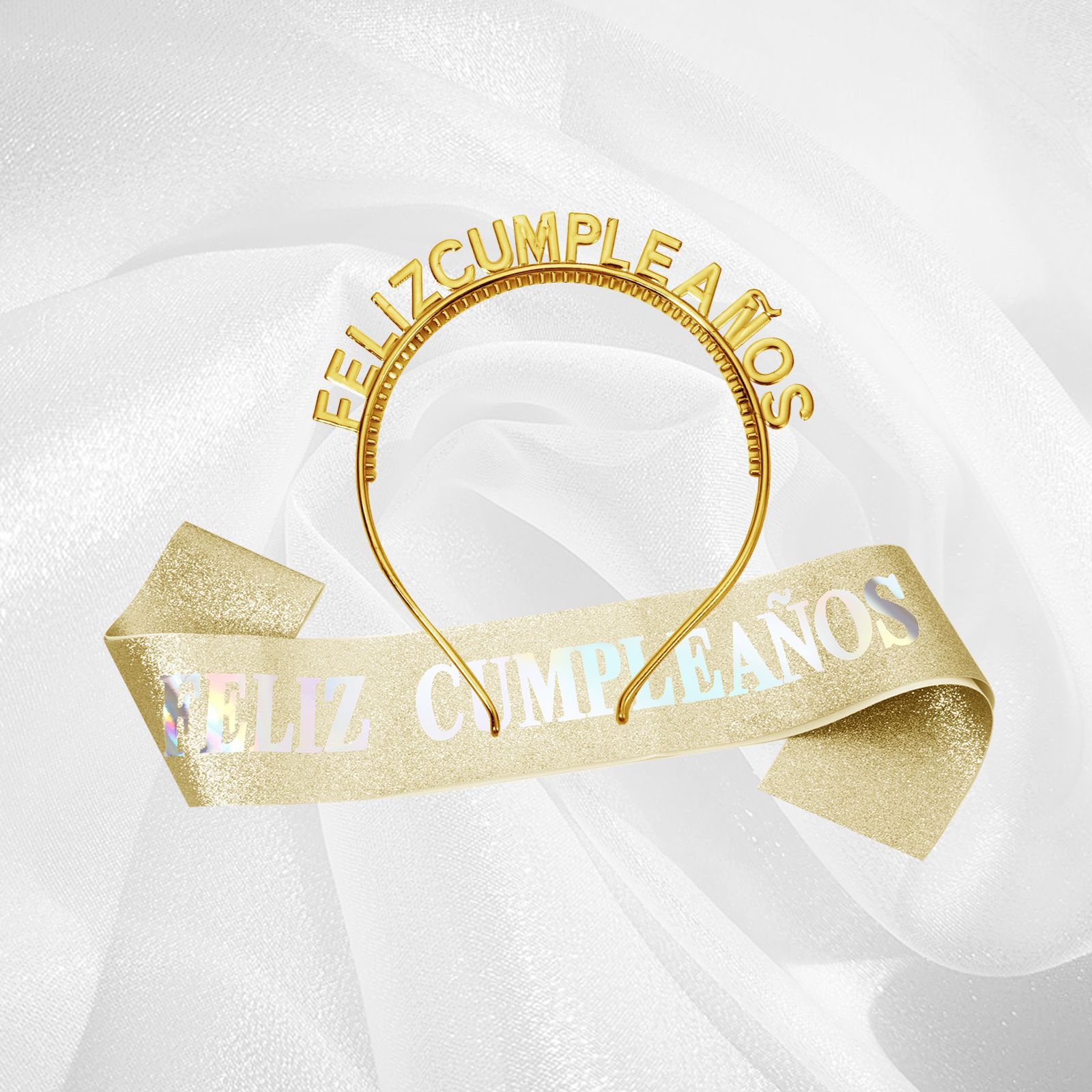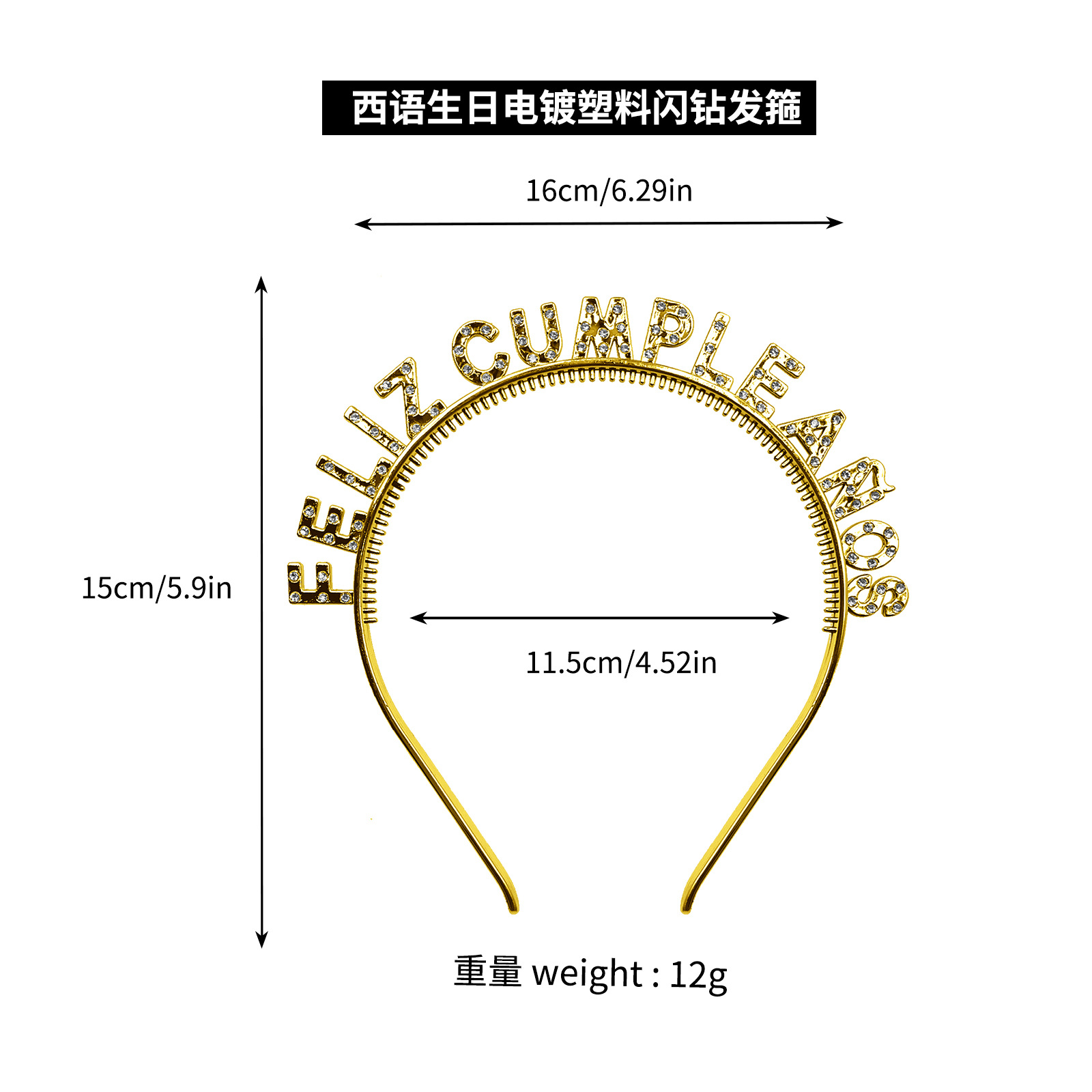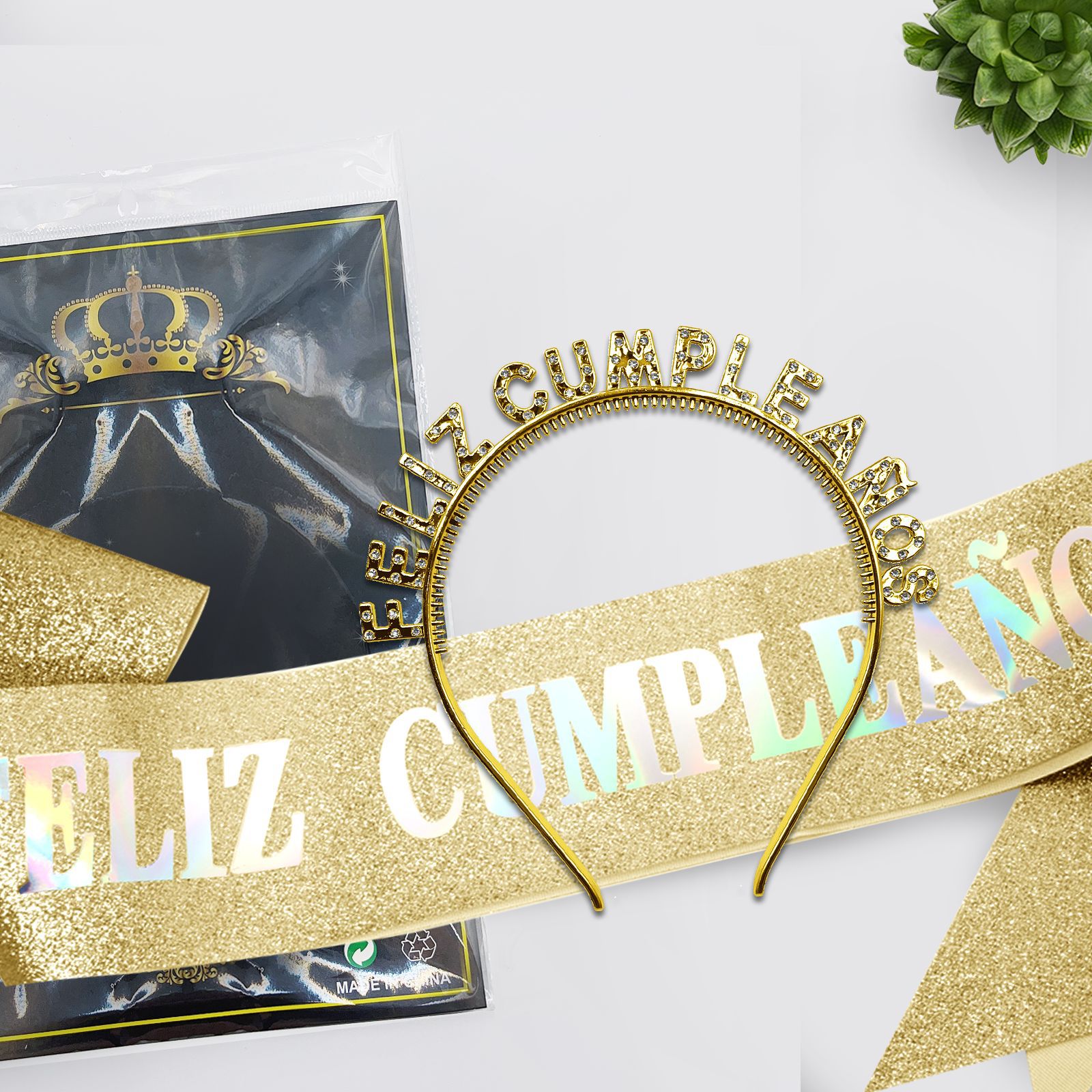 Cumpleaños español correa de hombro serie de taladro de plástico chapado en oro fiesta de ventas calientes en el extranjero de Europa y América