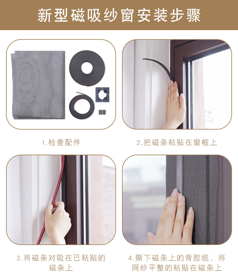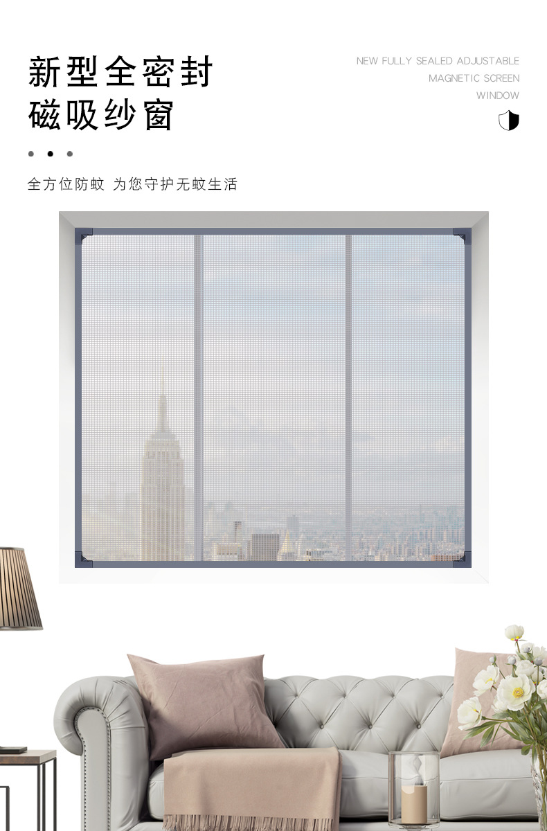 Ventana de malla de mosquito de diamante de succión magnética Ventana de arena invisible de imán autoadhesivo para el hogar ventana magnética simple Puerta de pantalla de mosca