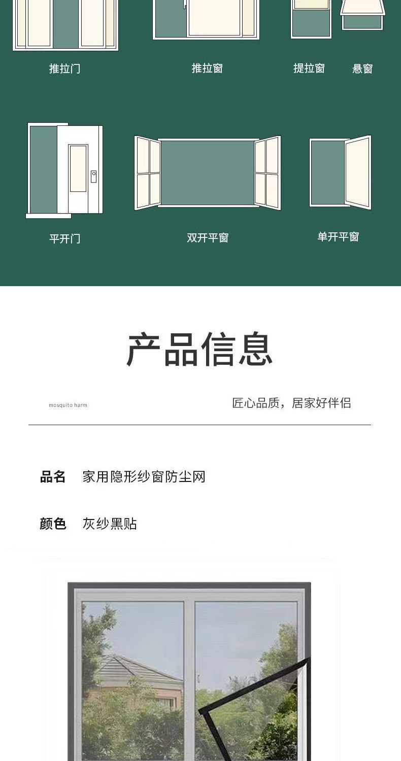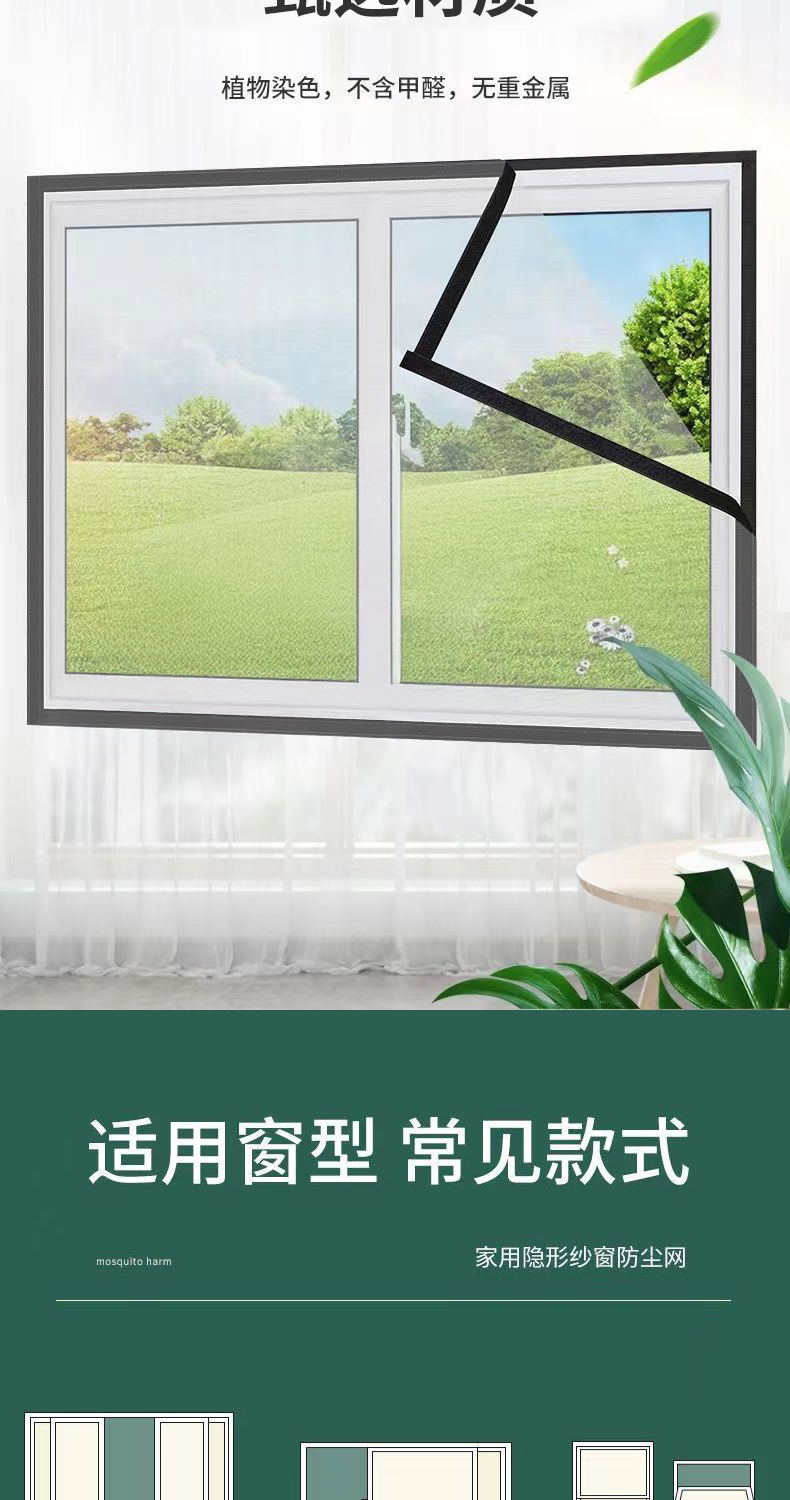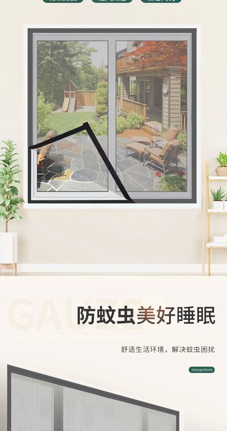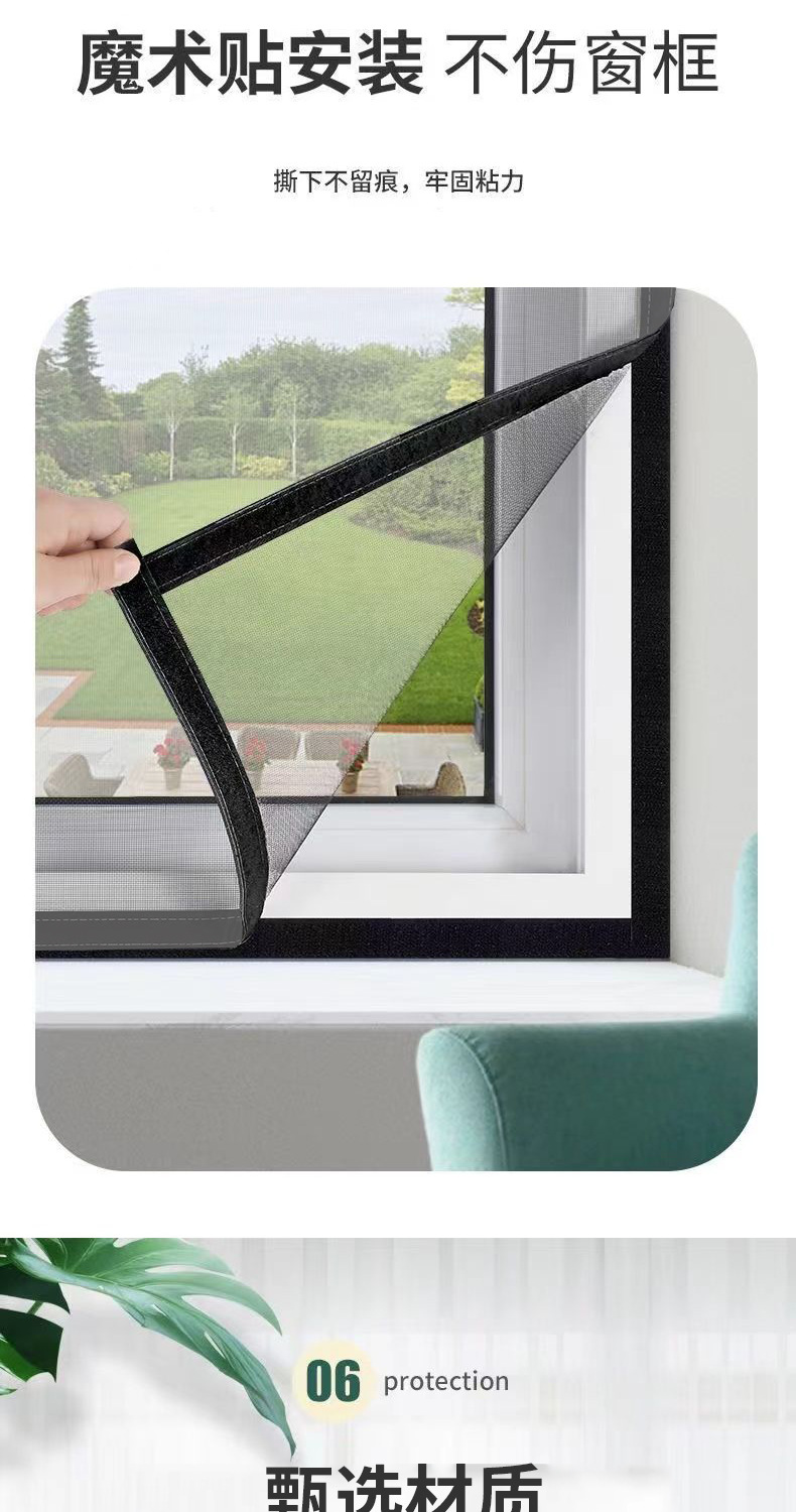 Ventana de pantalla invisible a prueba de mosquitos con malla magnética de absorción magnética auto-instalada Velcro simple imán casero cortina de arena ventana auto-adhesiva