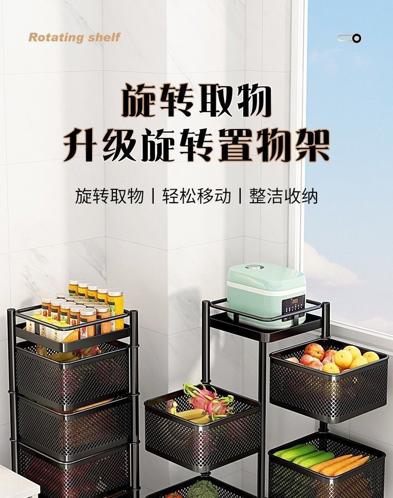 Cochecito giratorio de dormitorio de piso a techo de varios pisos Estante de cocina Estante de almacenamiento multifuncional Estante para bocadillos domésticos Estante de cabecera