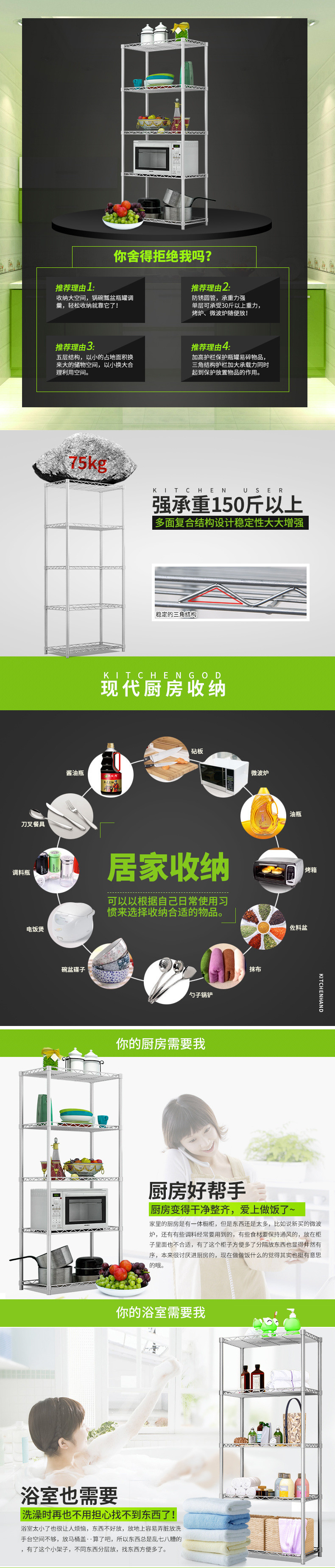 Estantes de cocina, horno de microondas de metal de piso, almacenamiento, artículos para el hogar, baño, horno, estante de almacenamiento multicapa