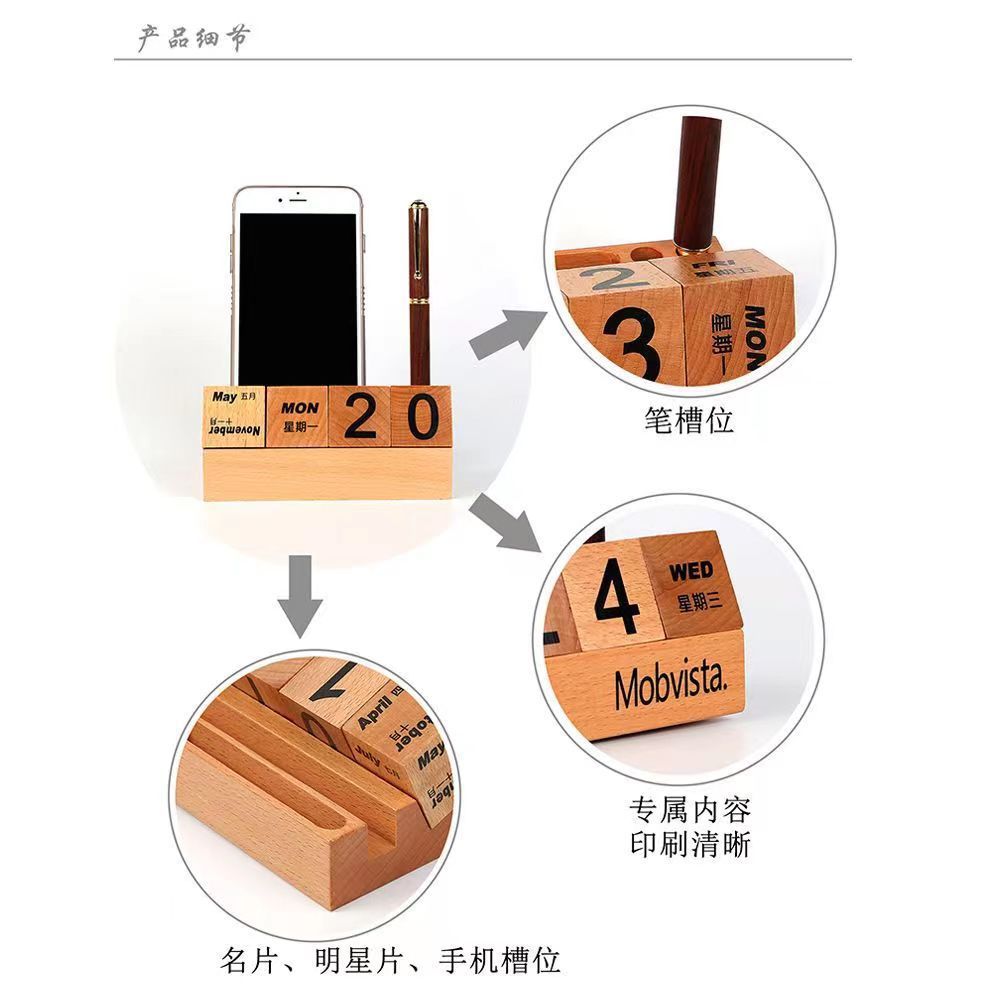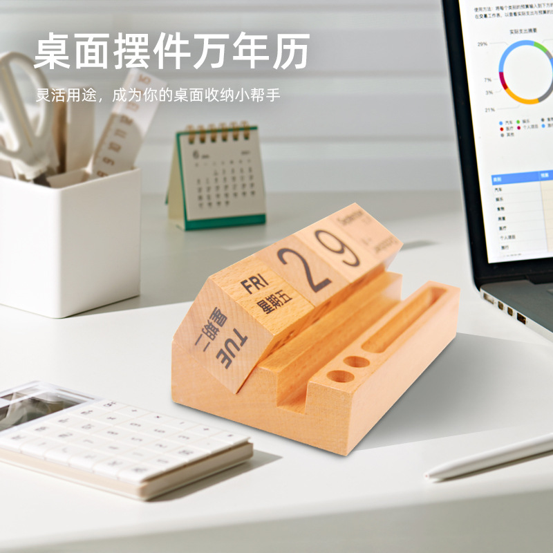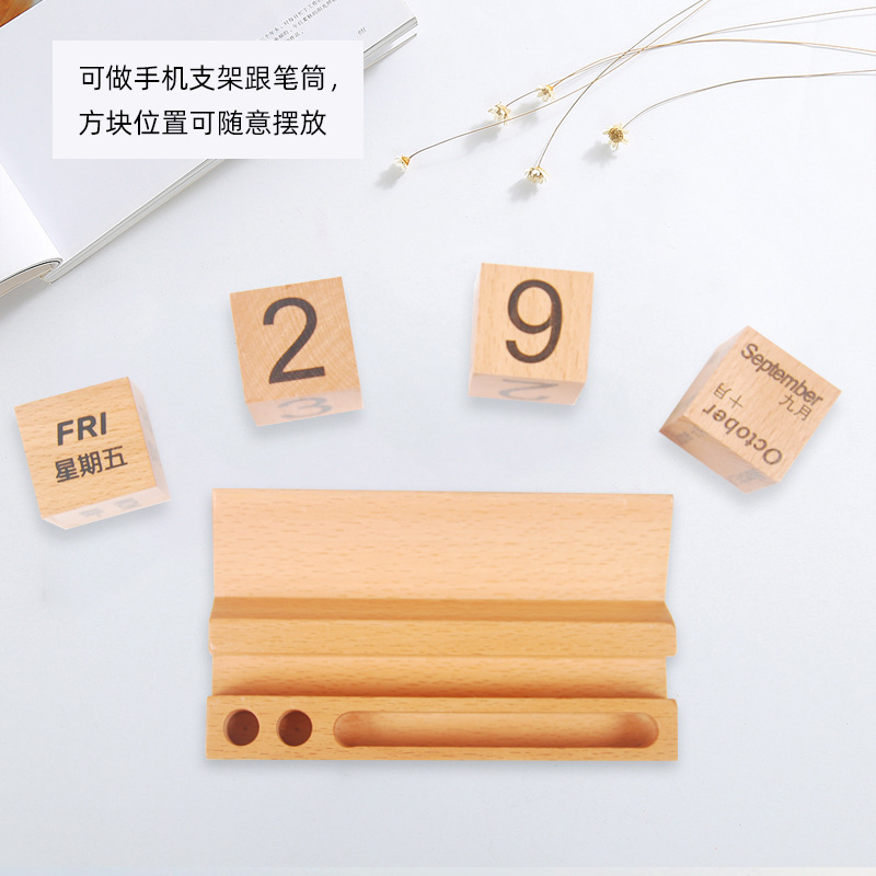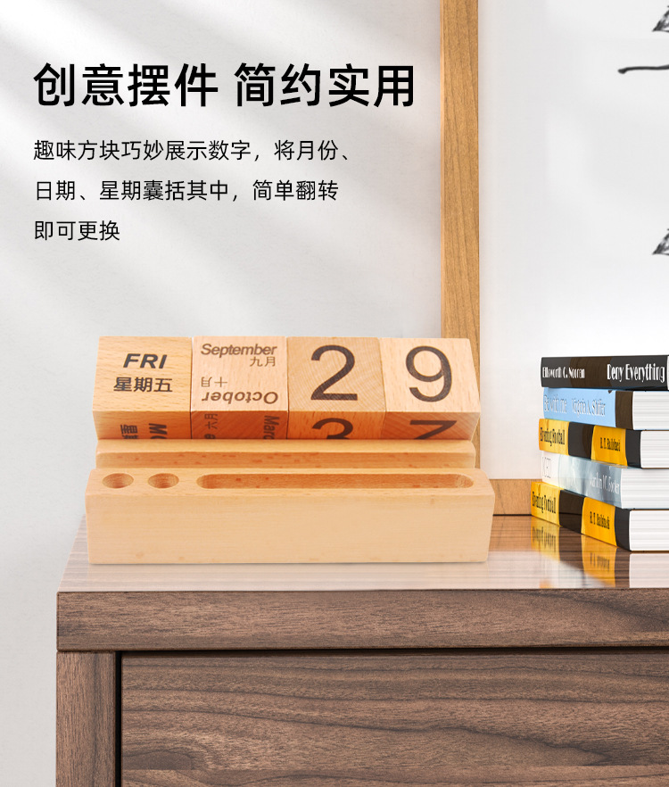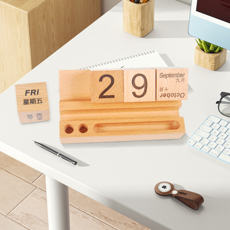 Calendario de escritorio de madera 2024 calendario perpetuo creativo de madera maciza calendario de escritorio de bloques de construcción calendario de flip adornamiento de alta cara