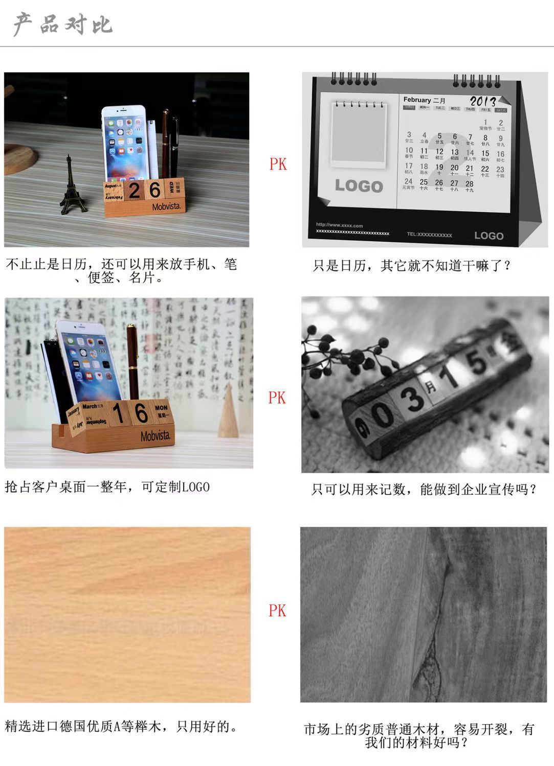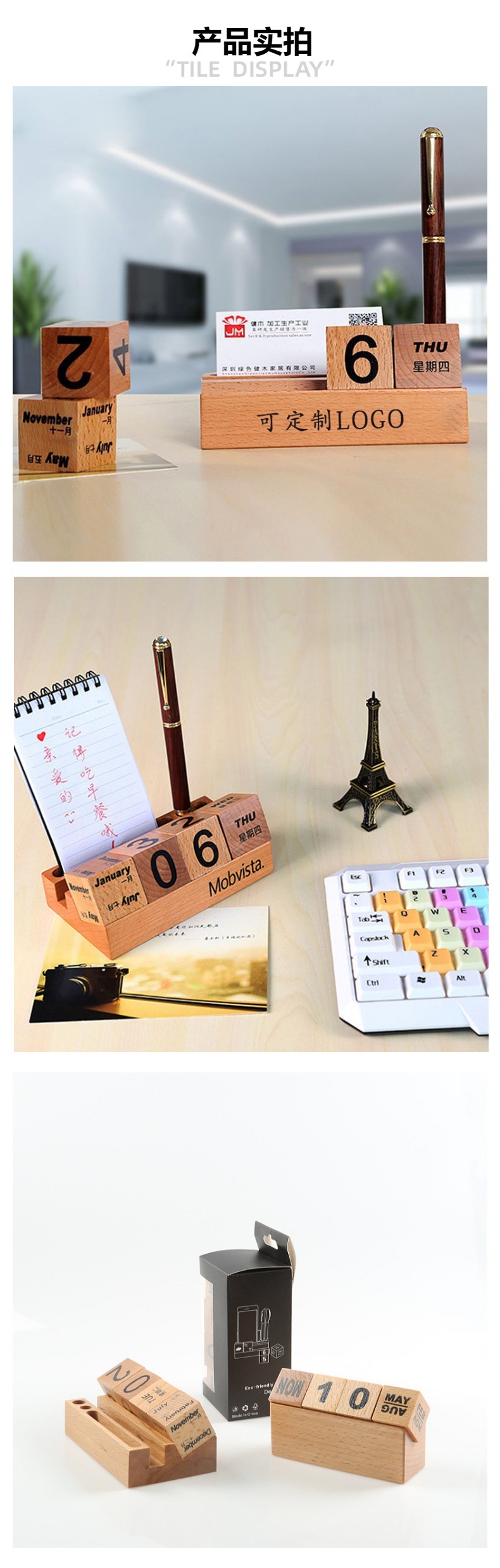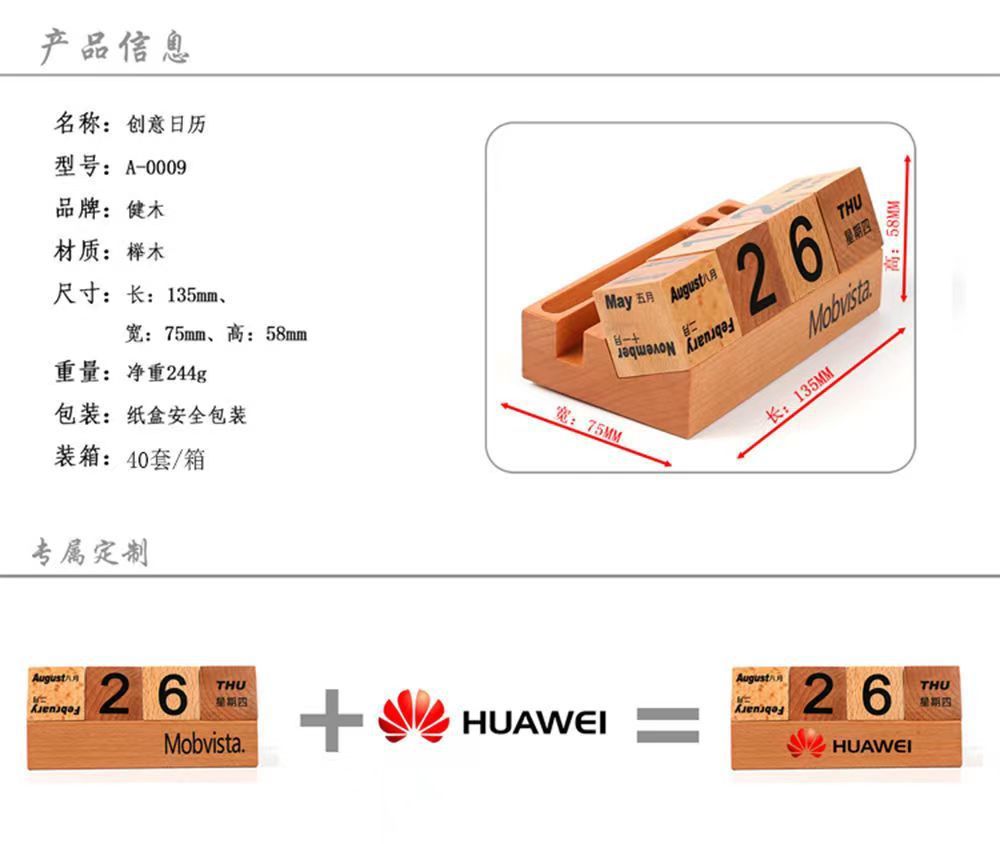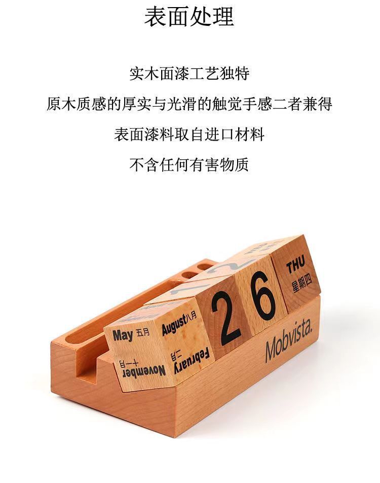 Calendario de escritorio de madera 2024 calendario perpetuo creativo de madera maciza calendario de escritorio de bloques de construcción calendario de flip adornamiento de alta cara