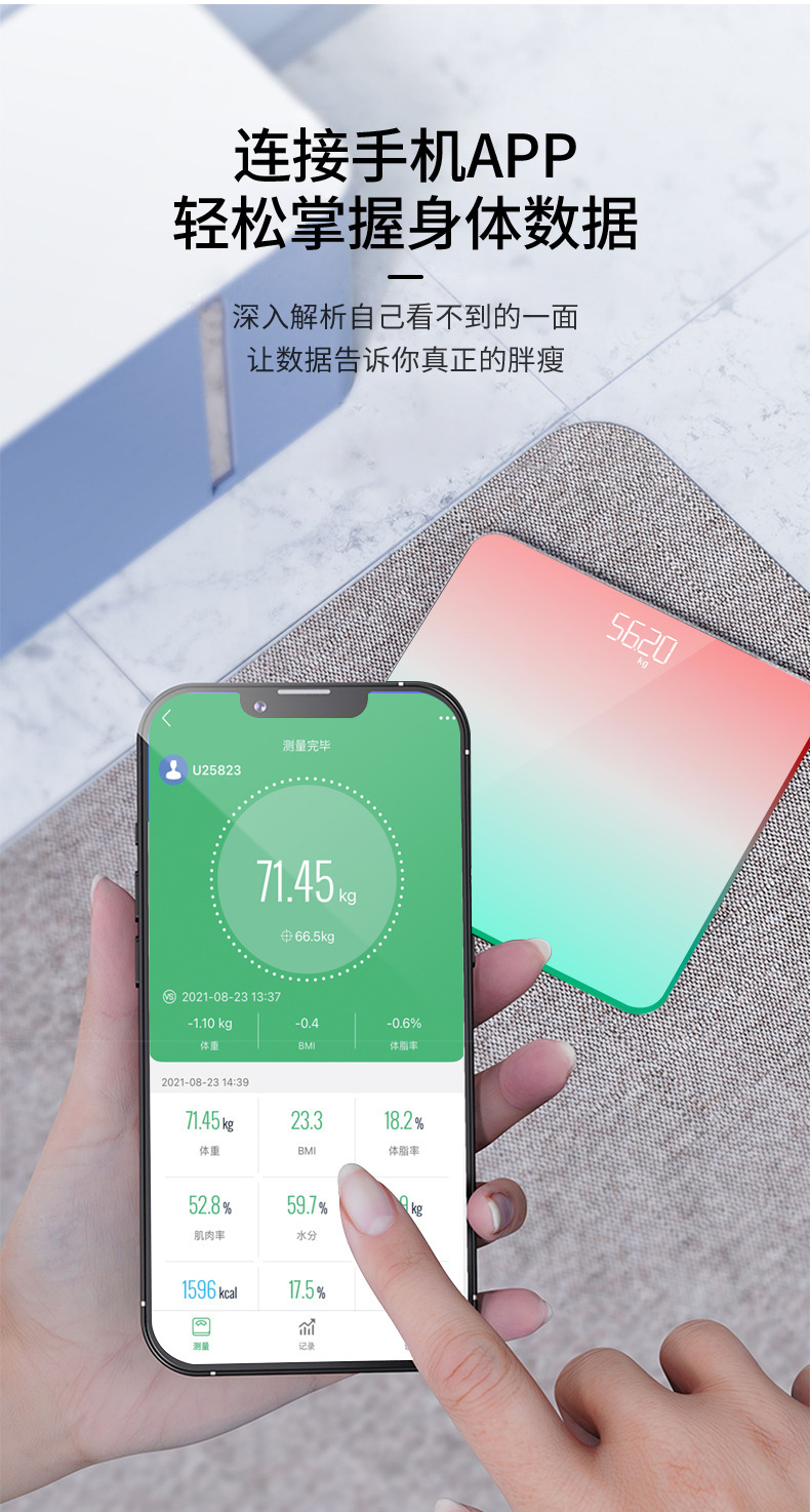 Báscula corporal inteligente Bluetooth, báscula electrónica recargable, precisa, para medición de grasa corporal y peso