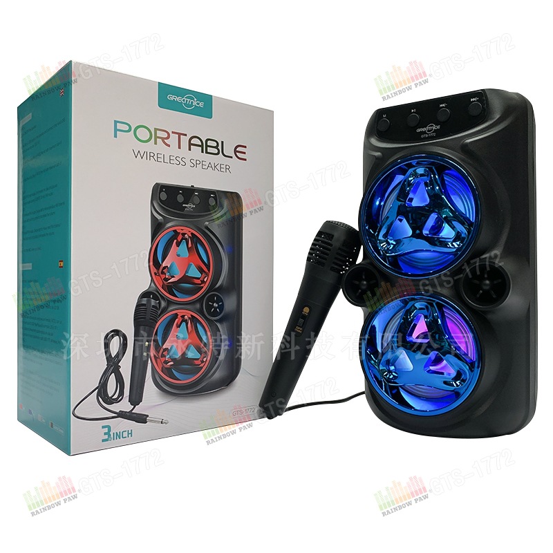 KTS GTS-1772 altavoz Bluetooth portátil doble de 3 pulgadas, inalámbrico para uso al aire libre, venta al por mayor