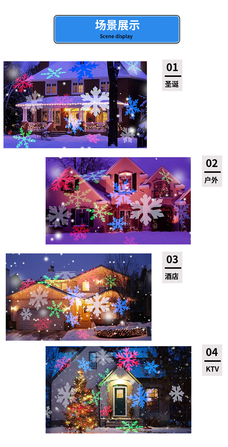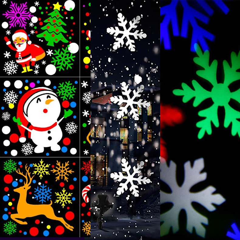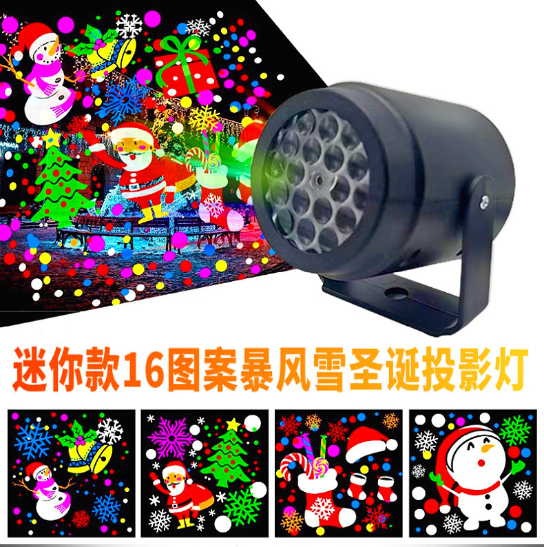 Mini proyector navideño con 16 patrones, copos de nieve y árbol de Navidad, lámpara decorativa giratoria