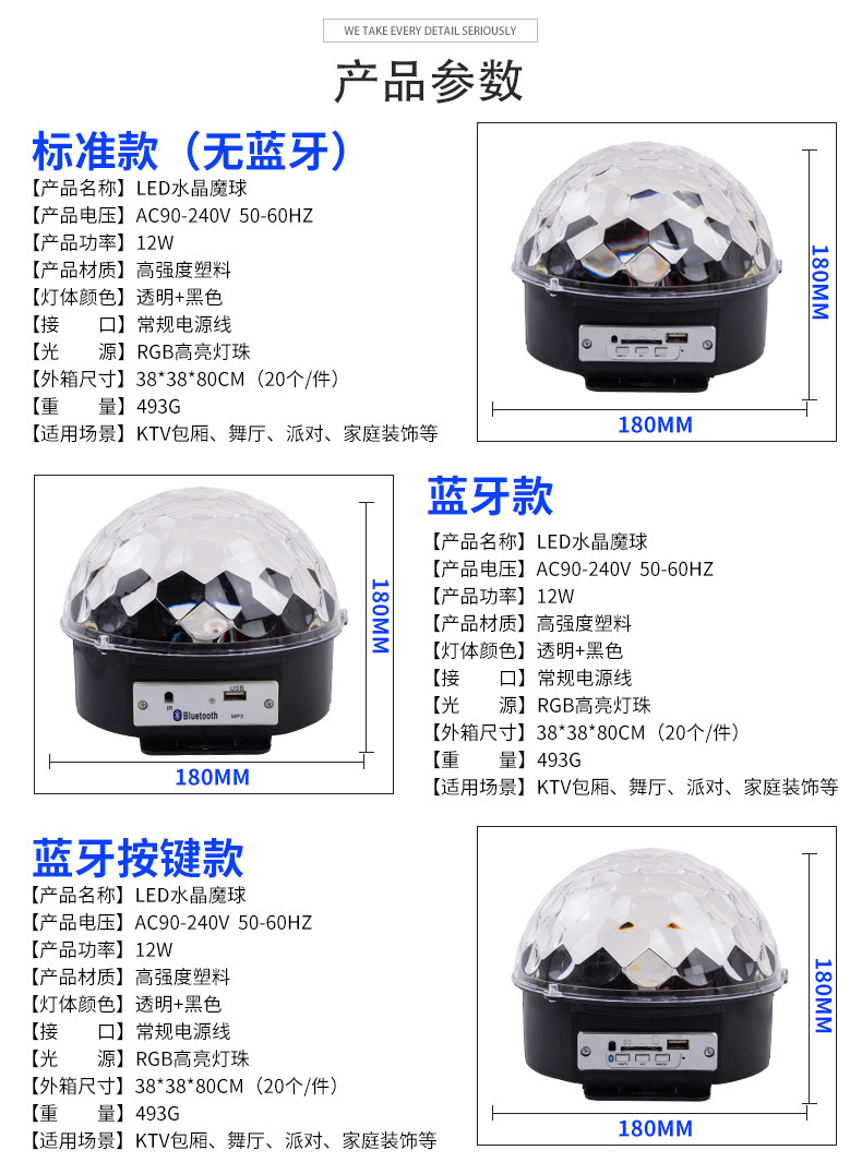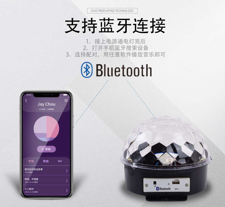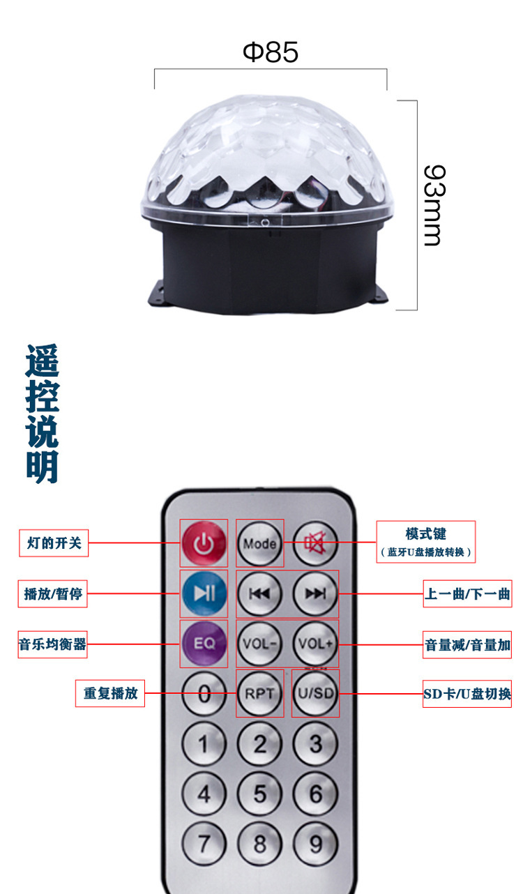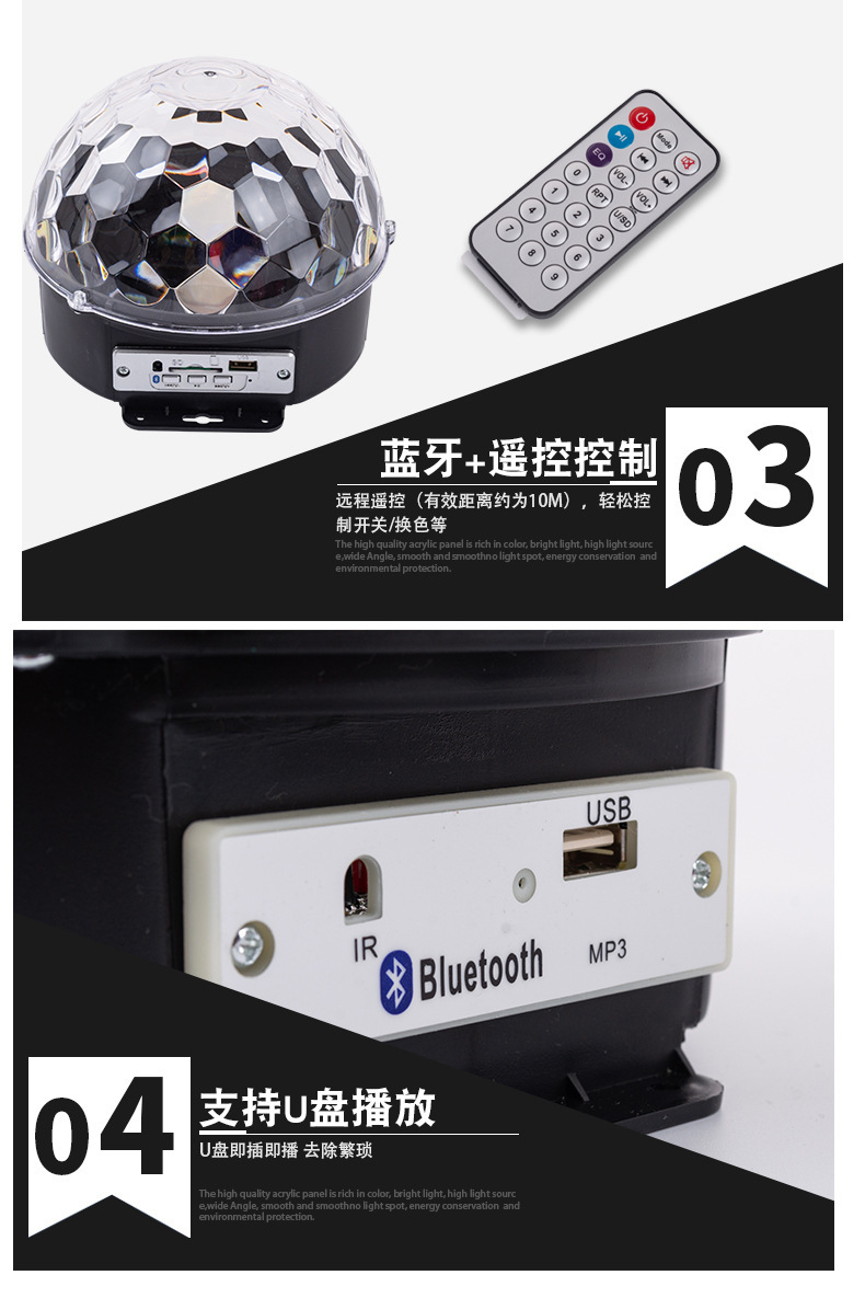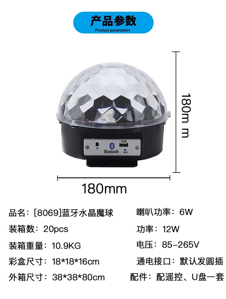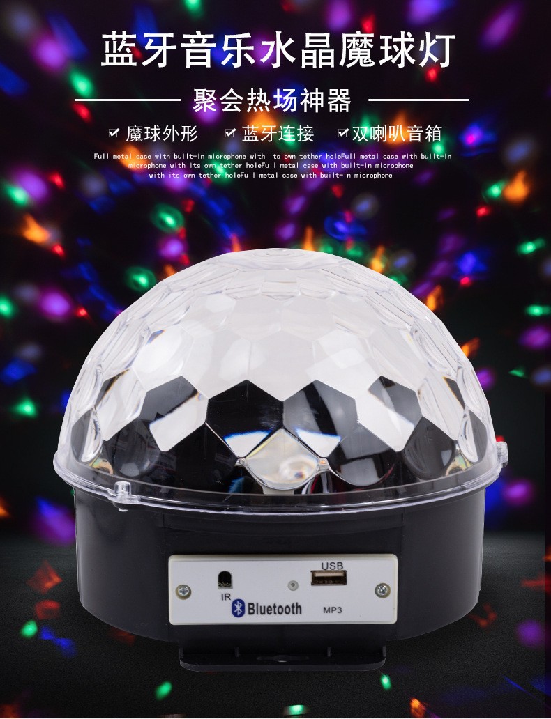 Bola mágica de cristal LED con control remoto, Bluetooth, MP3 y control por voz, luz de escenario para KTV